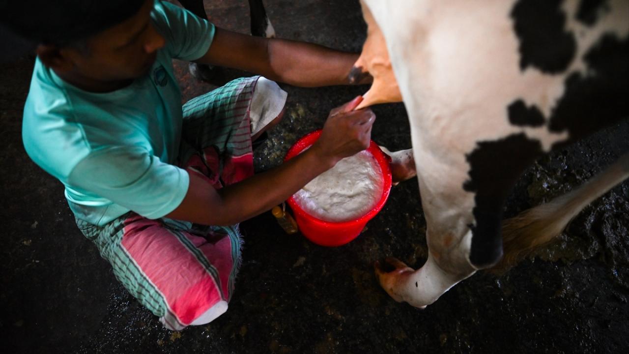 Bangladeş`in Barisal kentinde bulunan bir çiftlikte Dünya Süt Günü öncesi ineklerin ve buzağıların bakımı özenle yapılıyor.