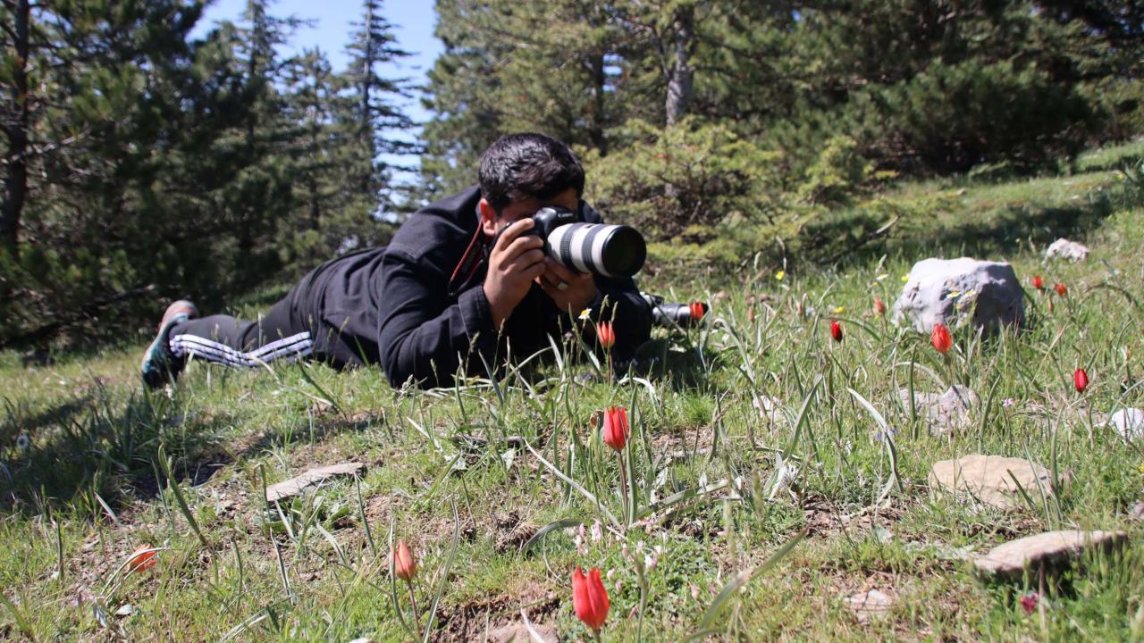 Doğaseverler, laleleri canlı görebilmek için Spil`e çıkarken, doğa fotoğrafçıları da bol bol fotoğraf çekiyor.