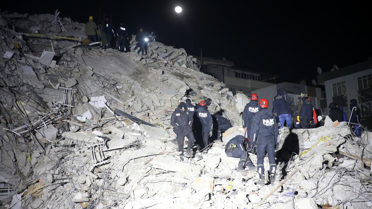 Enkazdaki yakınlarını umutla bekleyenlerden sessiz olmalarını isteyen ekipler, yüksek teknoloji cihazlar kullanarak girdikleri beton yığınları arasından ses almaya çalışıyor.
