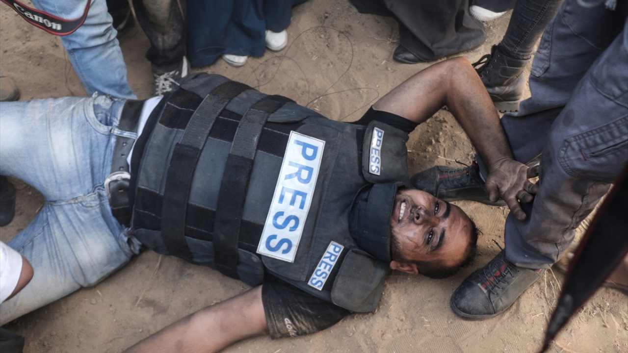 Filistinli gazeteci Yasir Murteca, Han Yunus`un doğusunda İsrail sınırındaki gösterileri takip ettiği sırada yaralanmıştı. Olay sonrası Murteca`nın şehit olduğu bildirildi. (Arşiv)
