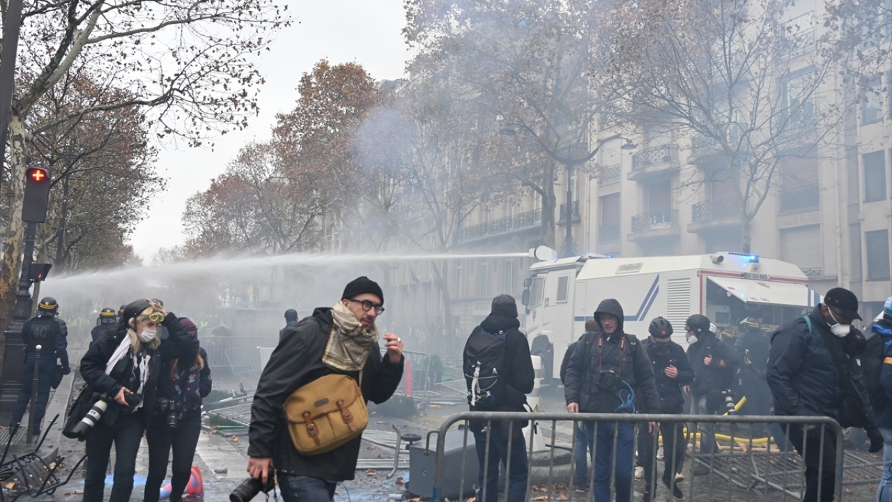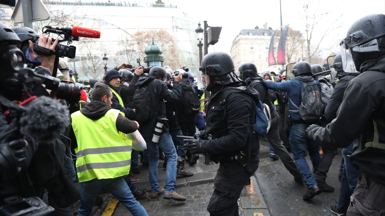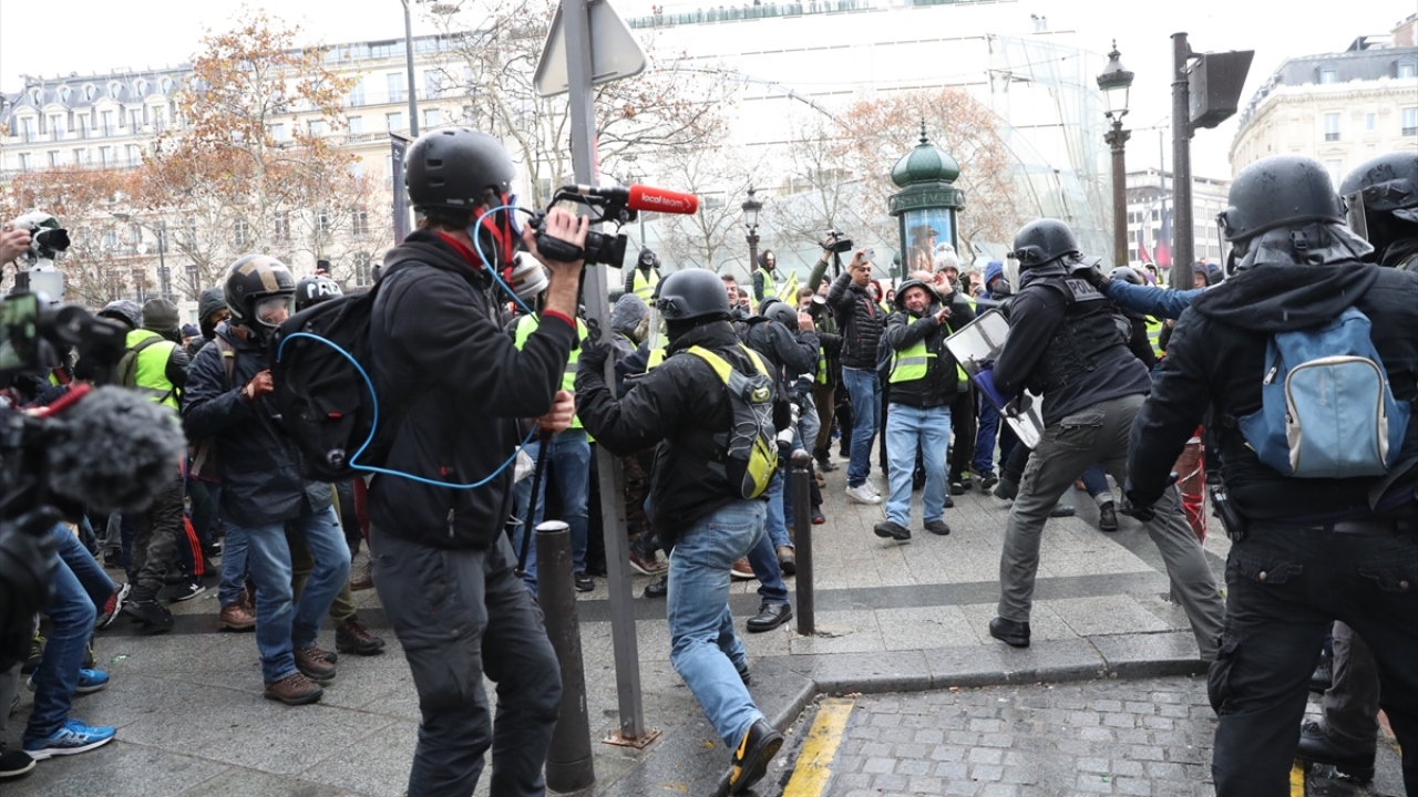 Basın mensupları, "sarı yeleklilerin", Fransa`daki akaryakıt zamları ve kötüleşen ekonomik koşulları protesto ettiği gösterileri de zorlu şartlar altında yakından takip etti. (Arşiv)