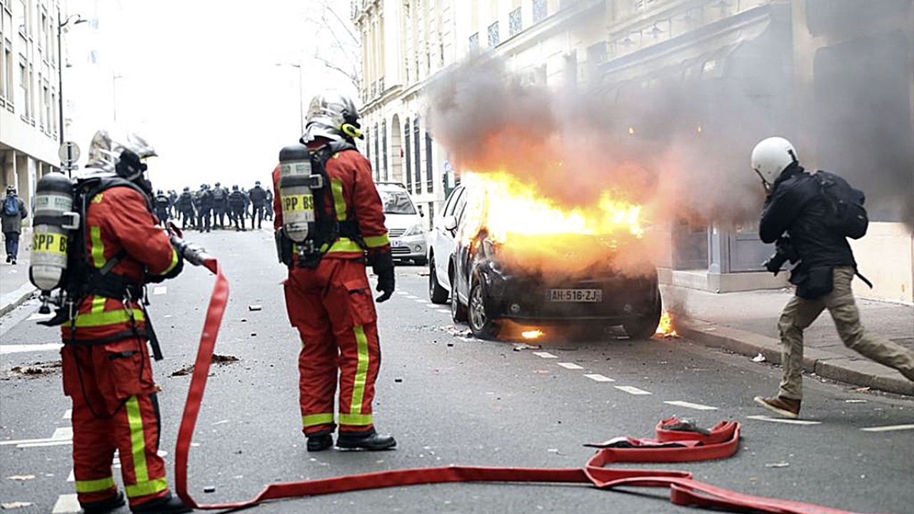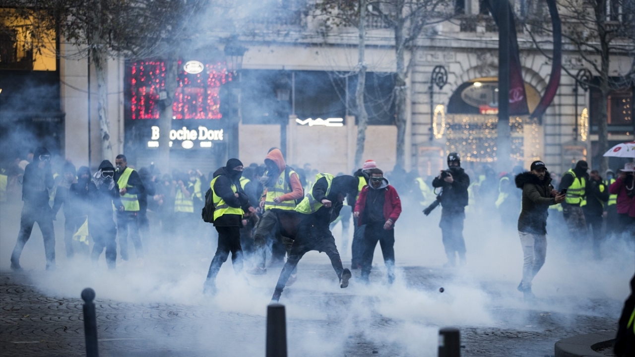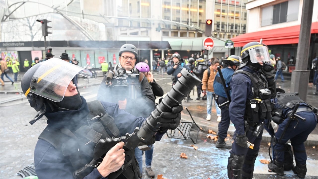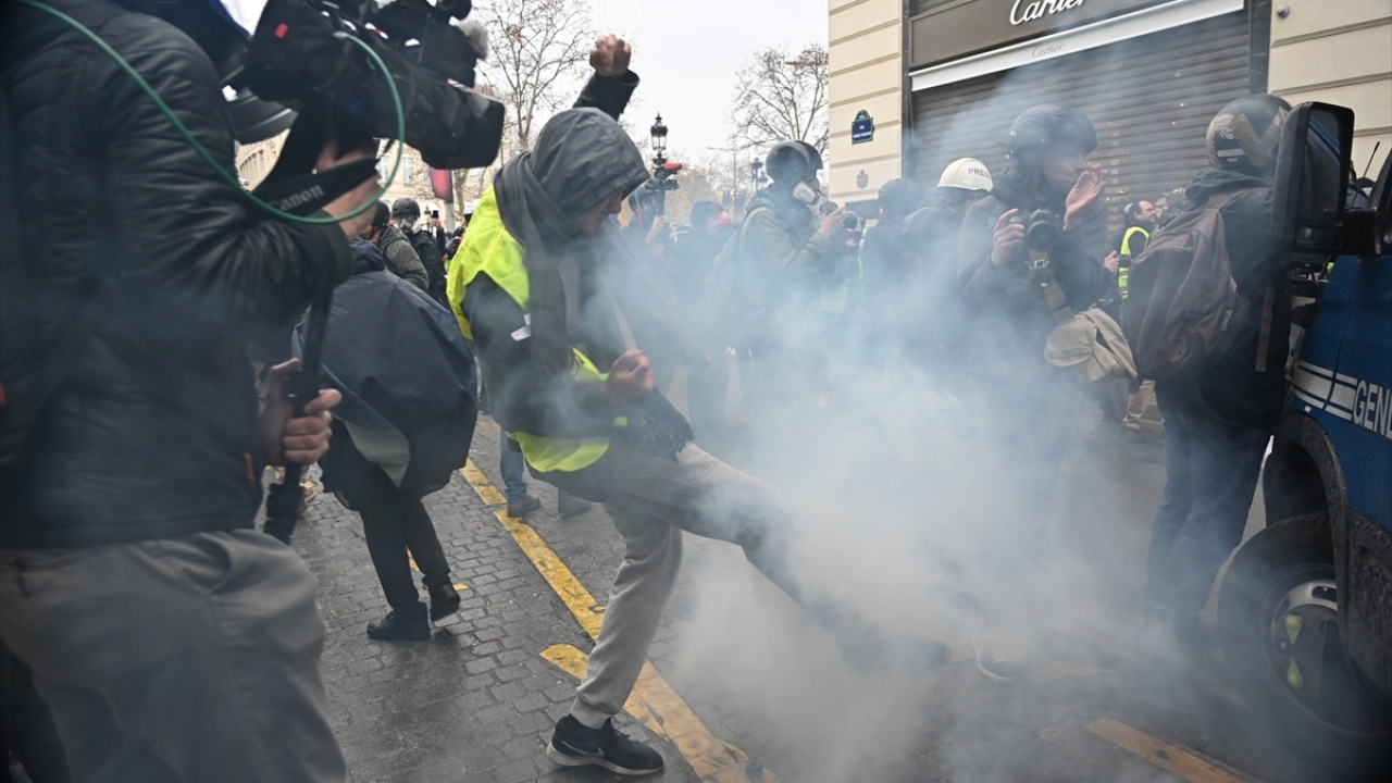 Basın mensupları, "sarı yeleklilerin", Fransa`daki akaryakıt zamları ve kötüleşen ekonomik koşulları protesto ettiği gösterileri de zorlu şartlar altında yakından takip etti. (Arşiv)