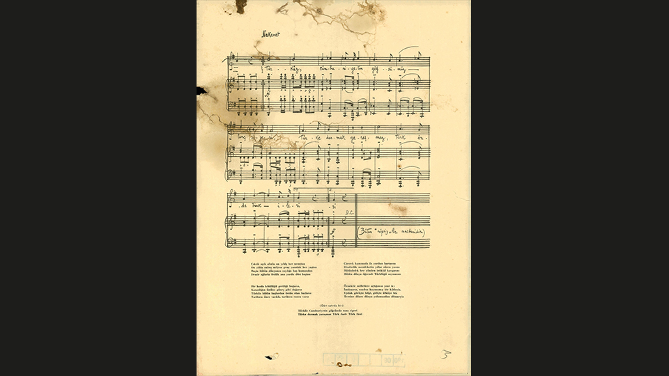 Konuyla ilgili arşivdeki belgeler arasında marşın notaları da bulunuyor.