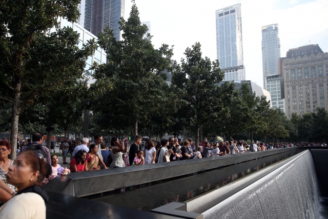 ABD'de 15 yıl önce gerçekleştirilen 11 Eylül terör saldırılarında hayatını kaybedenler New York'ta Yıkılan İkiz Kuleler'in yerinde yapılan anıt alanı ziyaret etmeye devam ediyor. Ölenlerin yakınları yıkılan binaların yerine yapılan "Gözyaşı" havuzlarının etrafındaki isimlerin yanına çiçek ve bayraklar bıraktı.