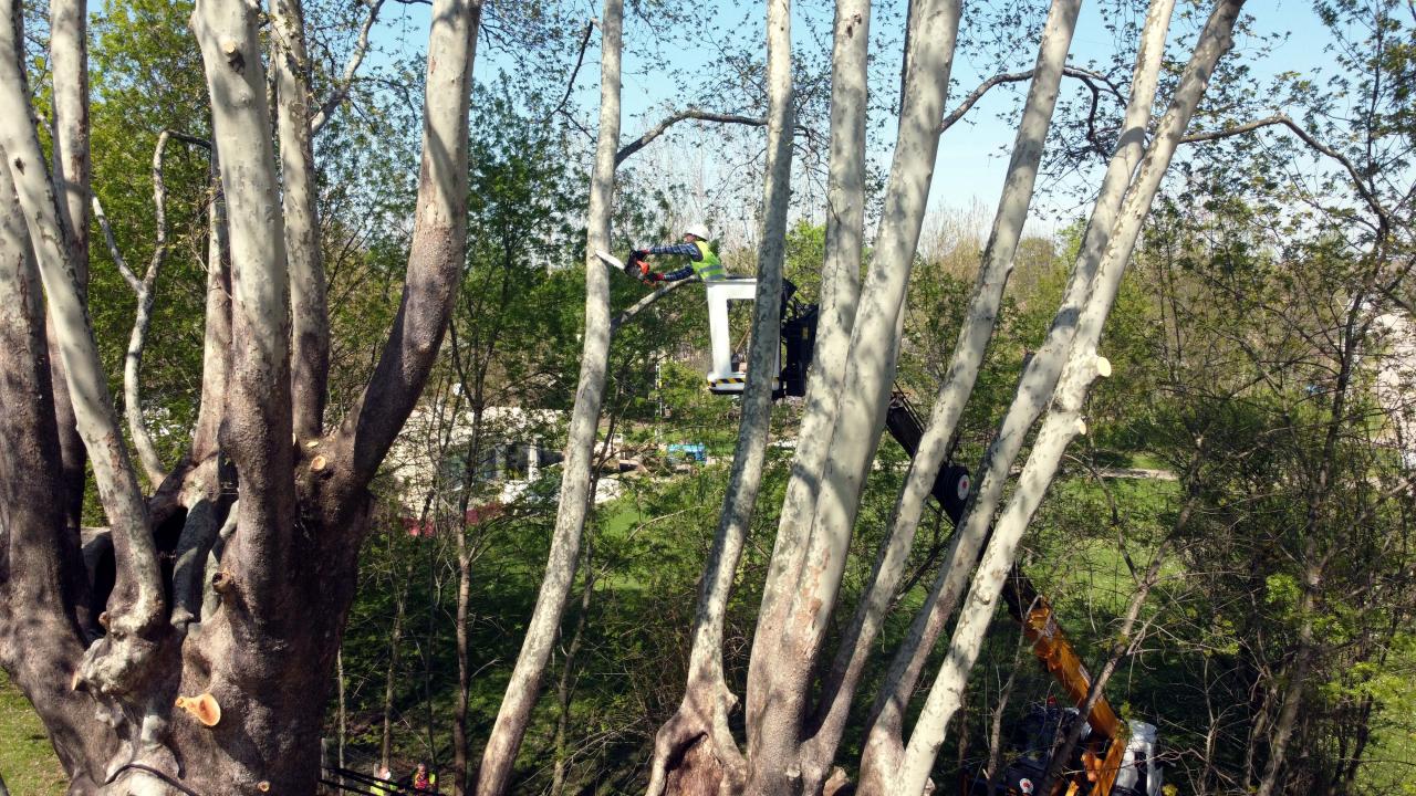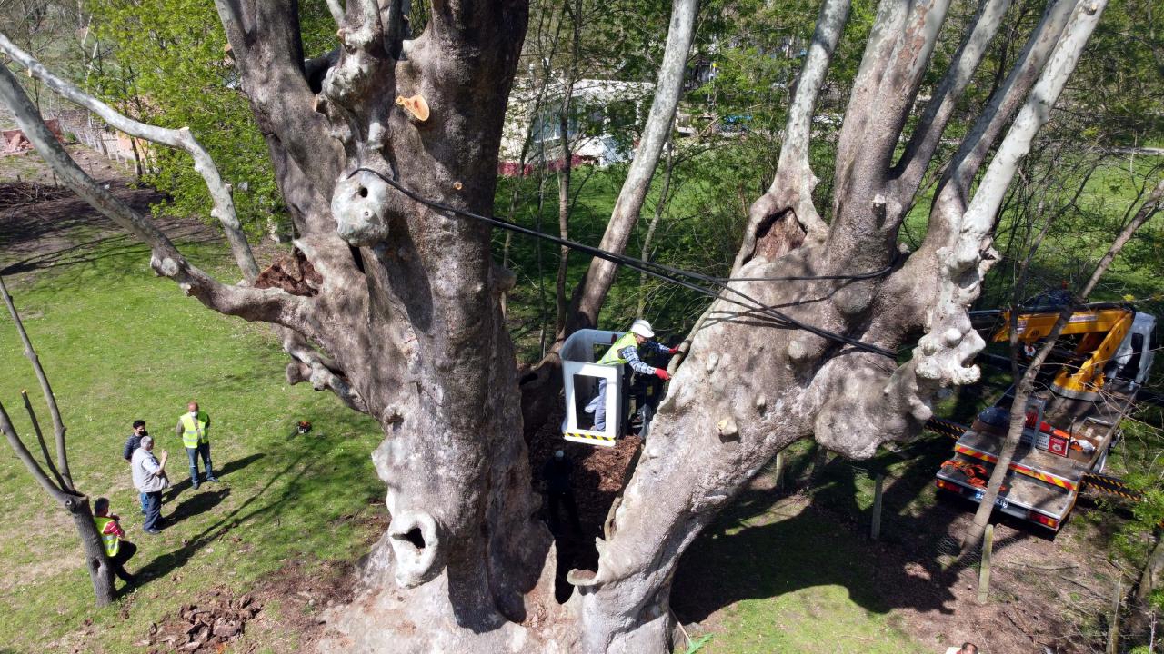 1100 yıllık çınar ağacı bakıma alındı
