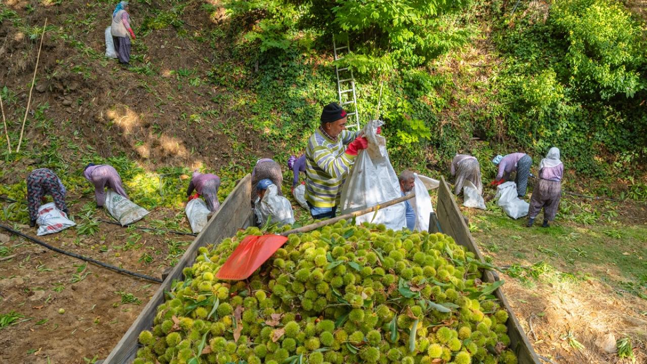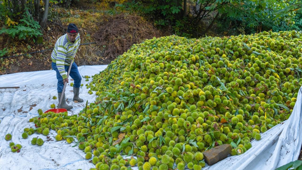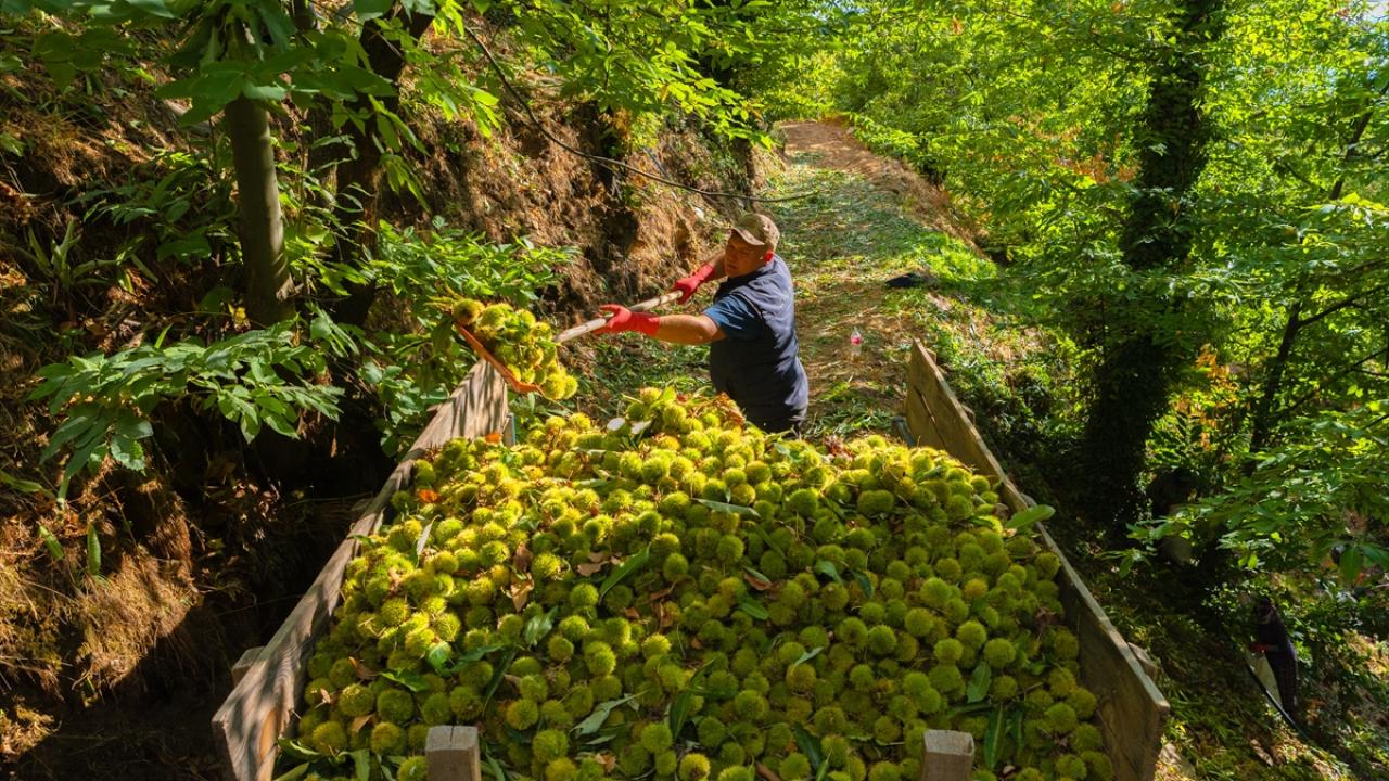 Türkiye’nin önemli kestane üretim merkezlerinden biri olan yerleşim yerinde, ana geçim kaynağı olan kestanede erkenci tür olarak bilinen “kara aşı” cinsi ürünlerin toplanmasına geçildi.