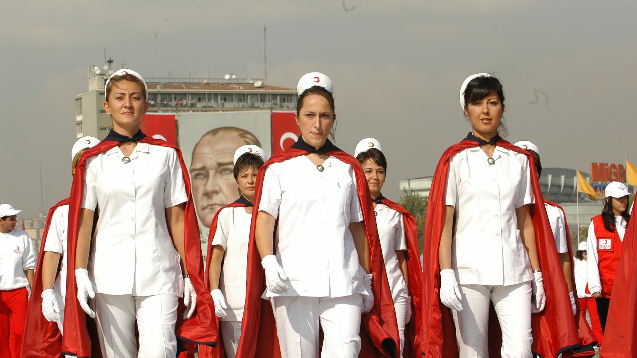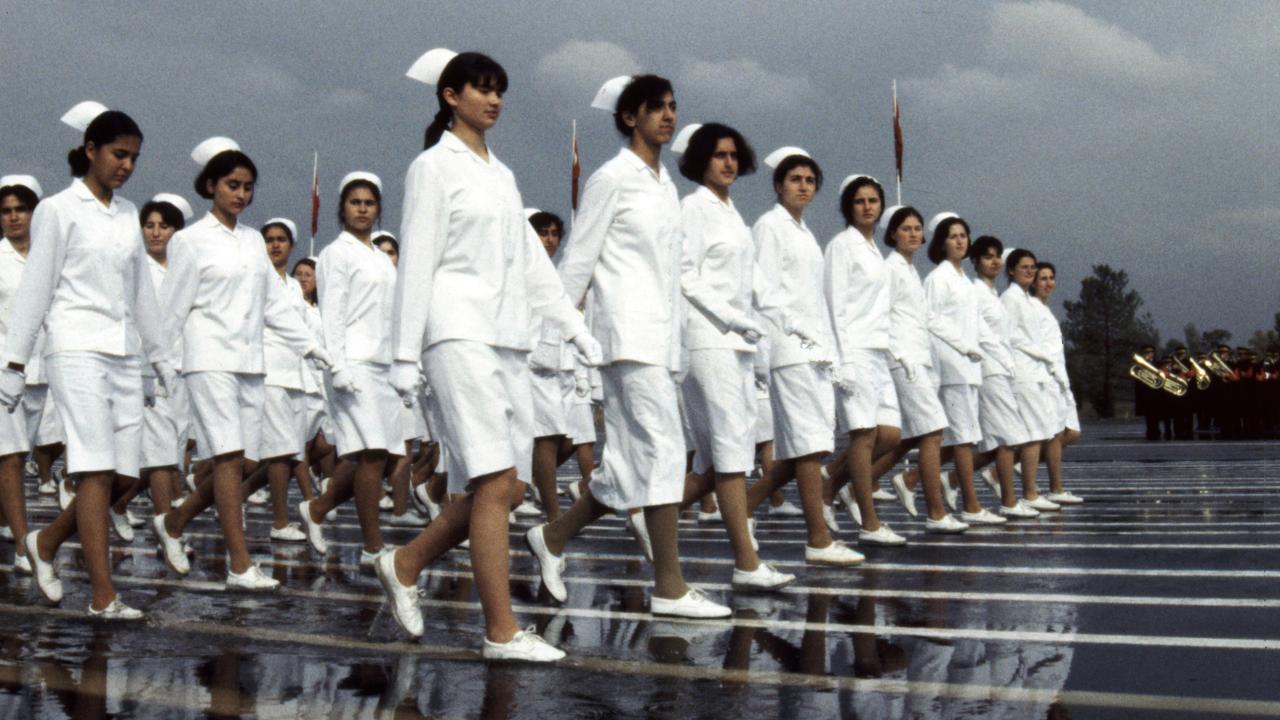 Kızılay Yüksek Hemşire Okulu öğrencileri, 1982`de 29 Ekim Cumhuriyet Bayramı`nın 59. yıl dönümü dolayısıyla Hipodrom`da düzenlenen geçit törenine katılmıştı. (Arşiv)