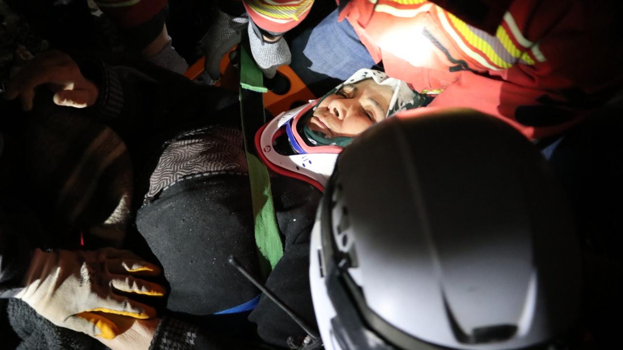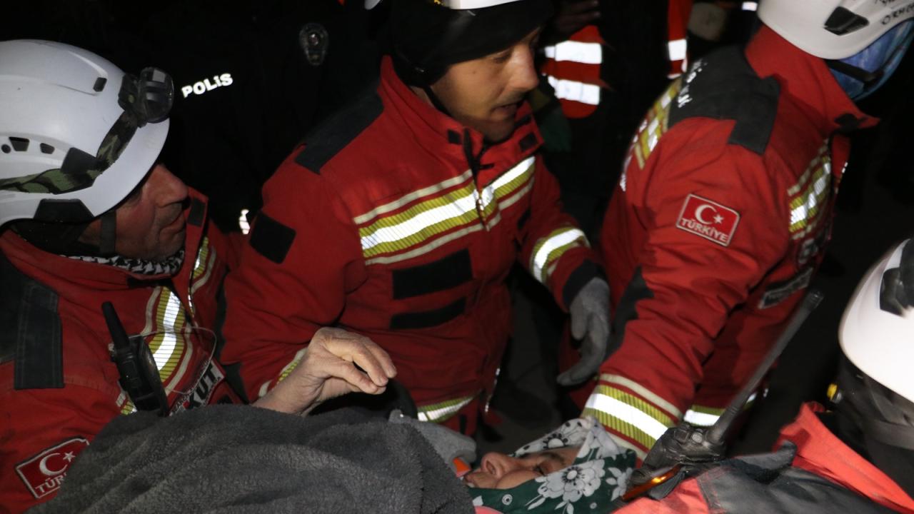 Kahramanmaraş'ın Onikişubat ilçesinde Azerbaycan Bulvarındaki Aydın Apartmanının enkazından, depremden 121 saat sonra 70 yaşındaki Menekşe Tabak sağ çıkarıldı.