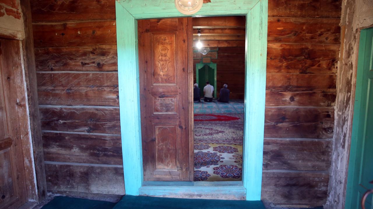 Cami çivisiz ve köşelerde ağaçlara açılan çentik kilit sistemi ile tamamen ahşaptan inşa edildi.