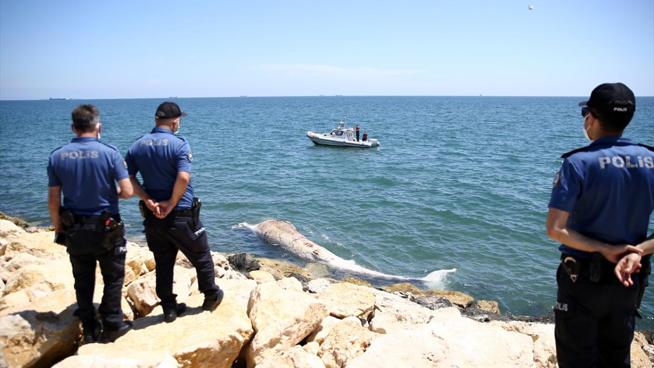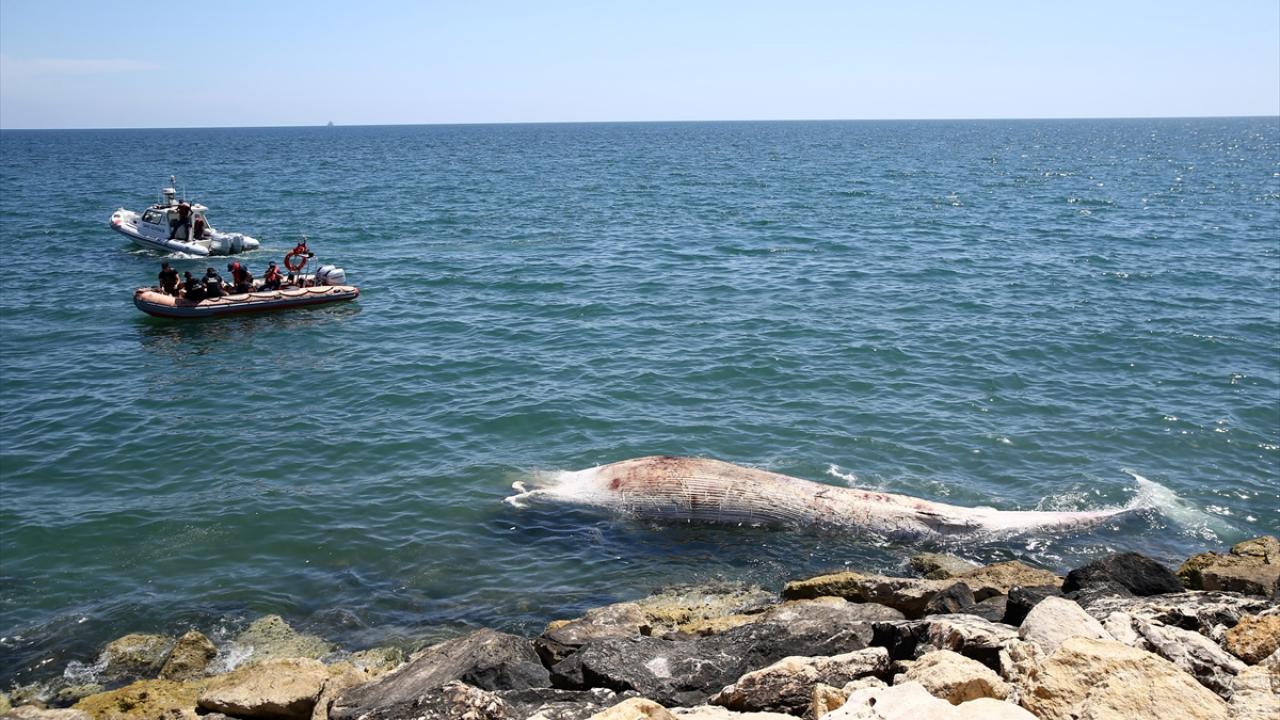 Sahil Güvenlik ekipleri, botla suda yaptığı incelemede, cismin beyaz bir balina olduğunu tespit etti.