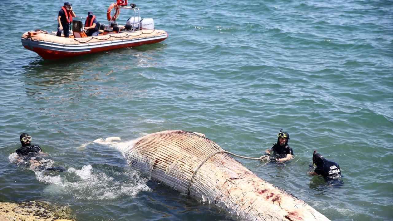 Balinanın taşınması için bölgeye bir sahil güvenlik botu ile itfaiye ekibi daha sevk edildi.