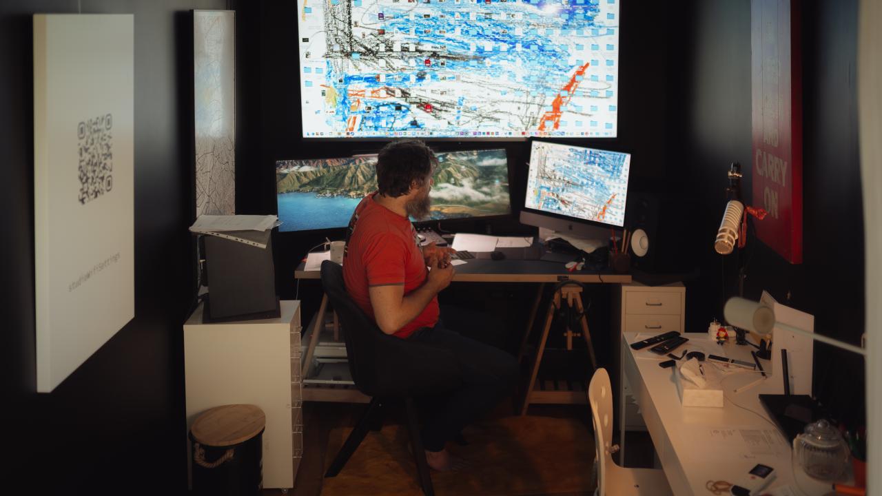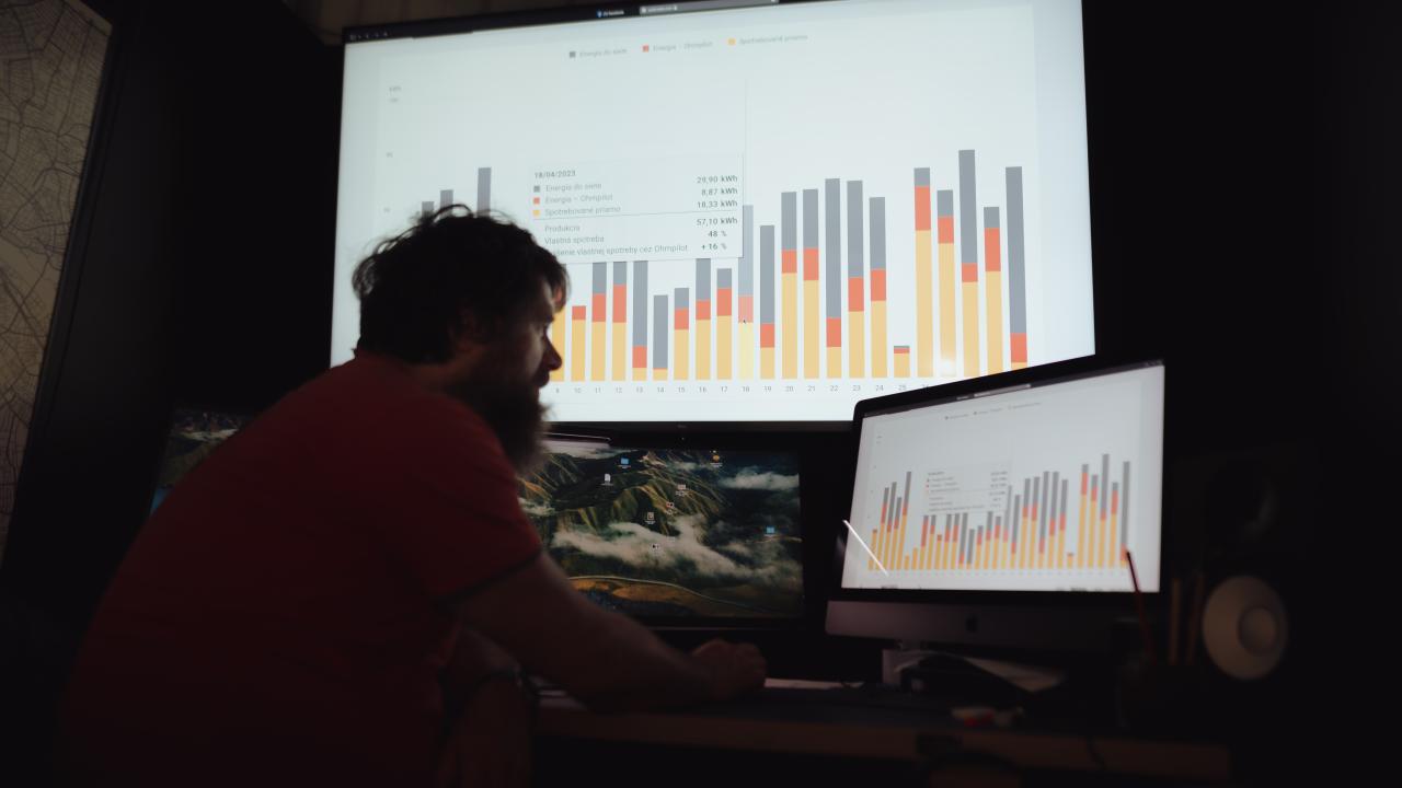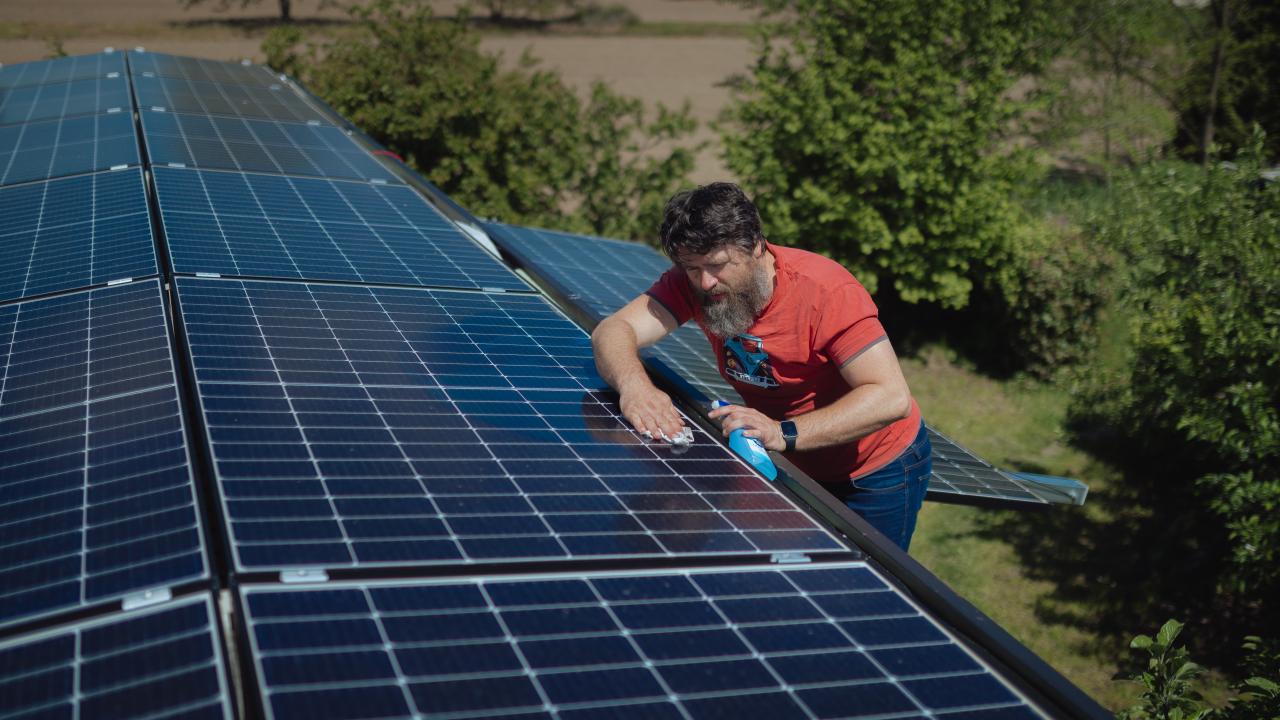 Güneş panelleriyle çalışan eko stüdyosunda güç tüketimini kontrol ediyor.