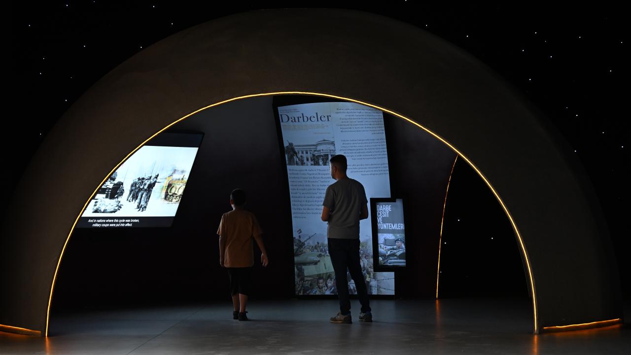 15 Temmuz`da yaşananların gelecek nesillerce dijital yöntemlerle deneyimlenmesini amaçlayan müzenin ilk bölümünde, Türkiye ve dünyadaki darbeler yazılı ve görsel olarak anlatılıyor.