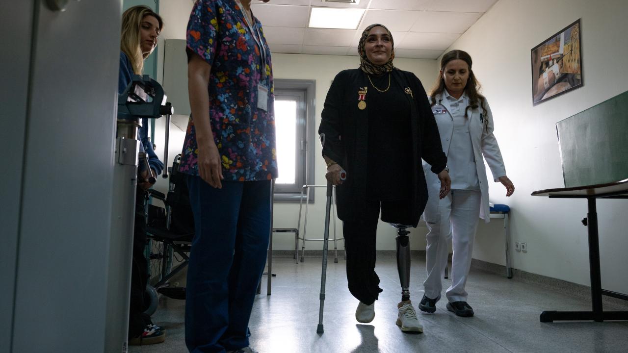 "Bacağım aşırı derecede ödem toplamıştı. Eski protezi taktığımda dengemi kaybediyordum, düşüyordum. Geldiğimden beri buradaki herkes gerçekten çok güzel ilgileniyor. Artık kendi ihtiyaçlarımı karşılamak istiyorum. Bundan sonra kimseye bağımlı olmak istemiyorum. Yanımda biri olmadan dışarı çıkamıyorum ve artık tek başıma bir şeyler yapmak istiyorum."