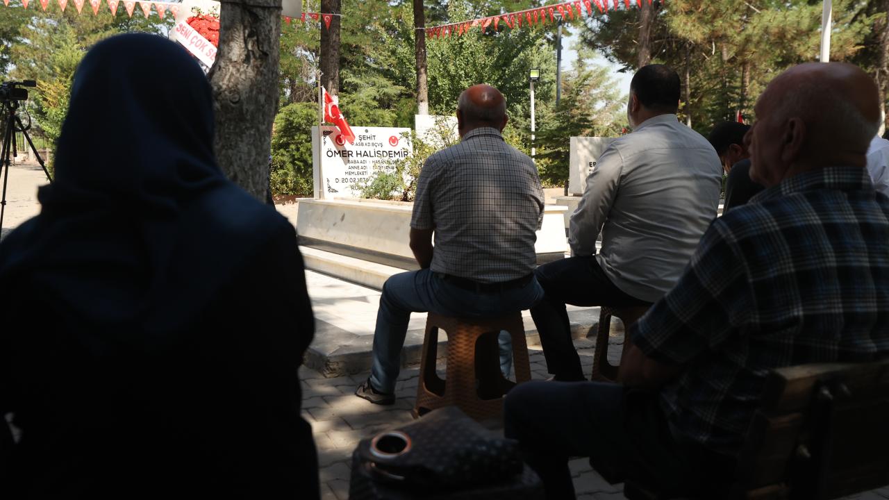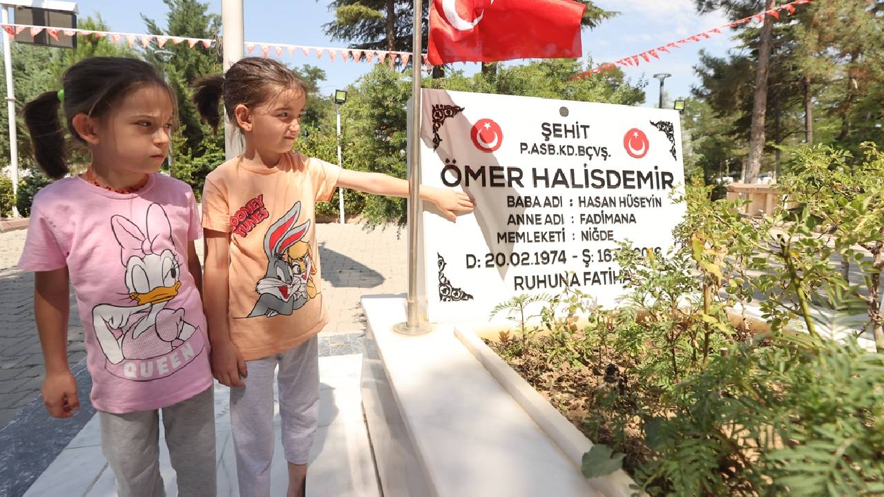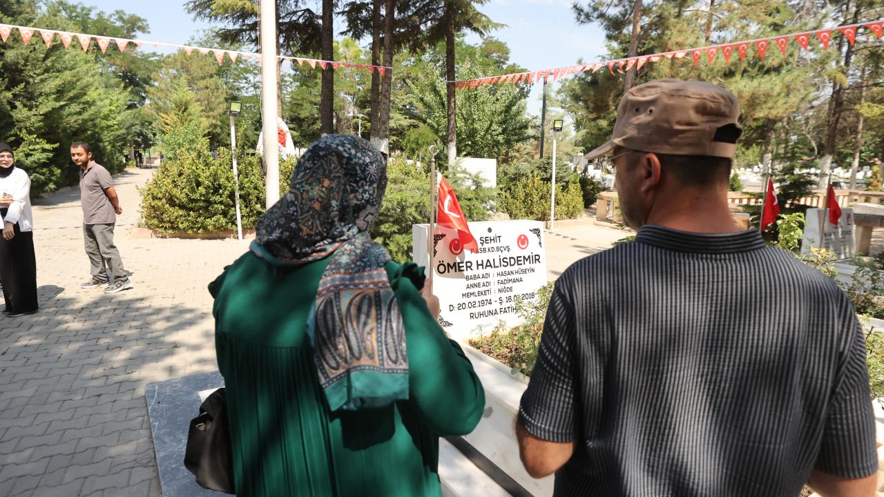 Şehidin kabrini ziyarete gelen çok sayıda vatandaş, Kur`an-ı Kerim ve dua okuyor. Çocuklarına Ömer Halisdemir`in kahramanlıklarını anlatan aileler, duygulu anlar yaşıyor.
