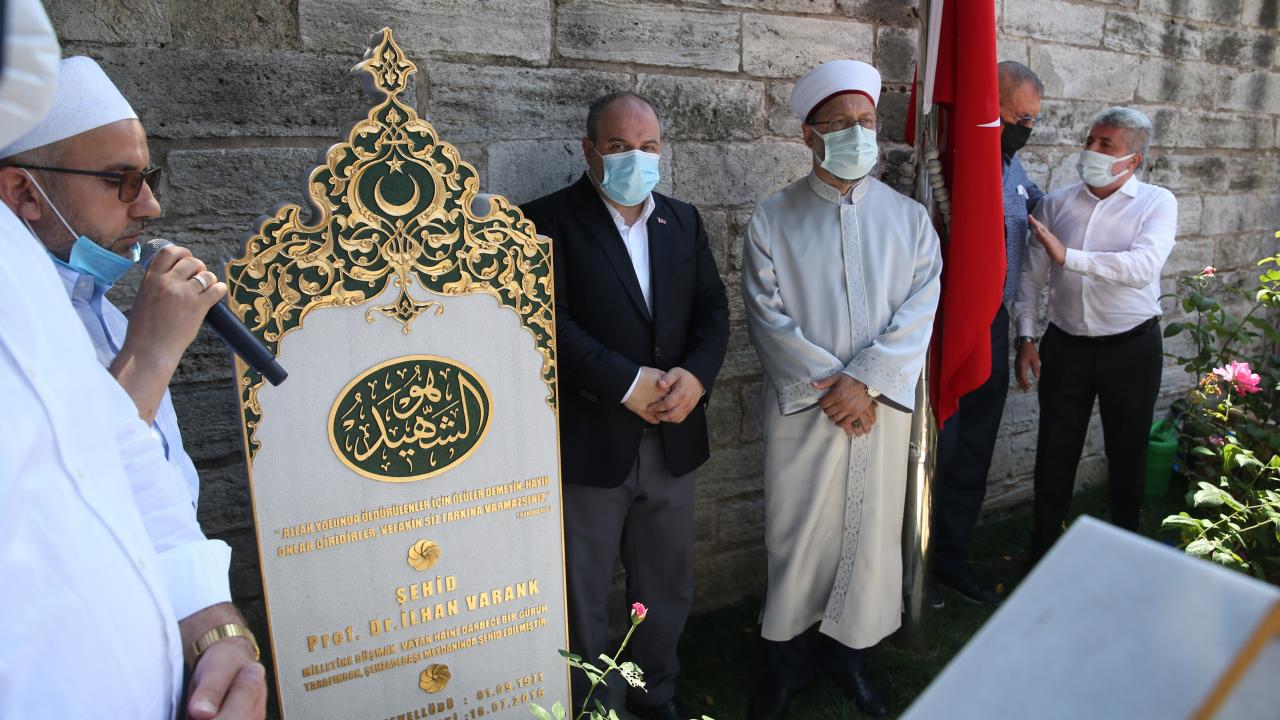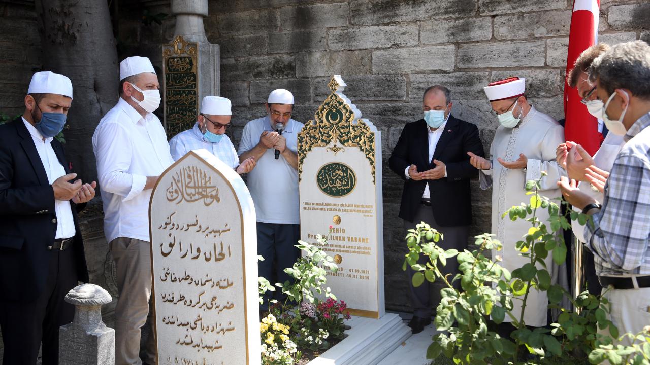 Şehit Varank`ın kardeşi Sanayi ve Teknoloji Bakanı Mustafa Varank ve beraberindekiler, daha sonra merhumun, Şehzadebaşı Camii avlusundaki kabrini ziyaret etti.