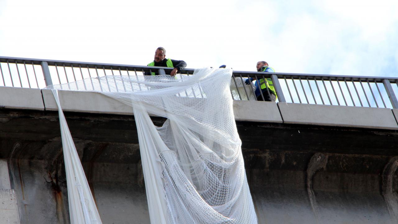 Karayolları Gene Müdürlüğü ekipleri, Ortaköy Viyadüğü altına file germe çalışması başlattı.