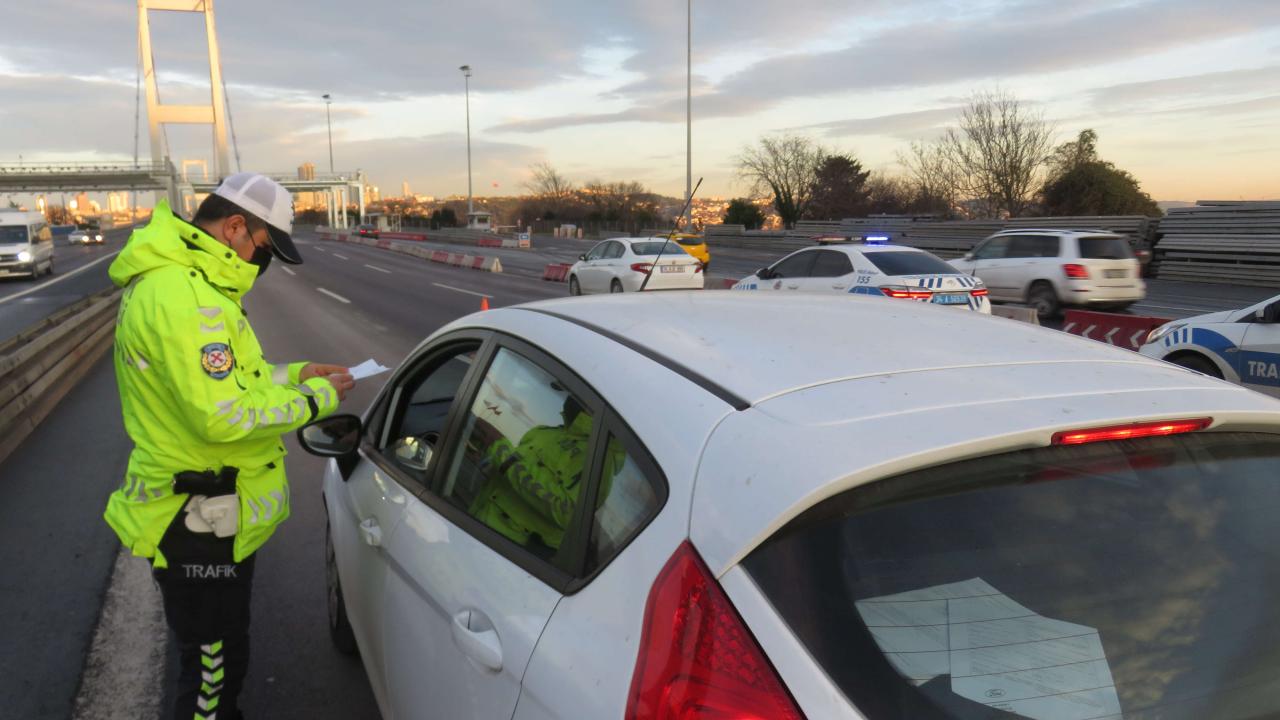 15 Temmuz Köprüsü`nde oluşturulan denetim noktasında ekipler araçları tek tek durdurarak sürücülerin ve yolcuların belgelerini kontrol etti.