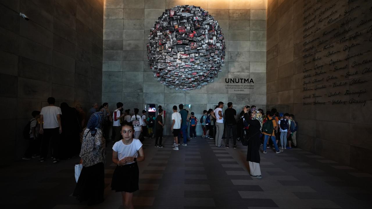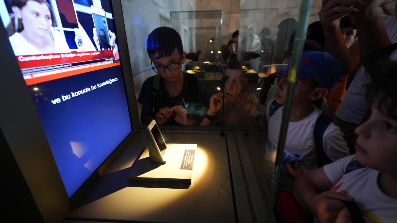 Darbe girişimini engellemek için mücadele verenlere ait eşyalar ile darbecilerin kullandığı mühimmatların sergilendiği Hafıza 15 Temmuz Müzesi`ni de ziyaret eden vatandaşlar, hatıra fotoğrafı çekti.