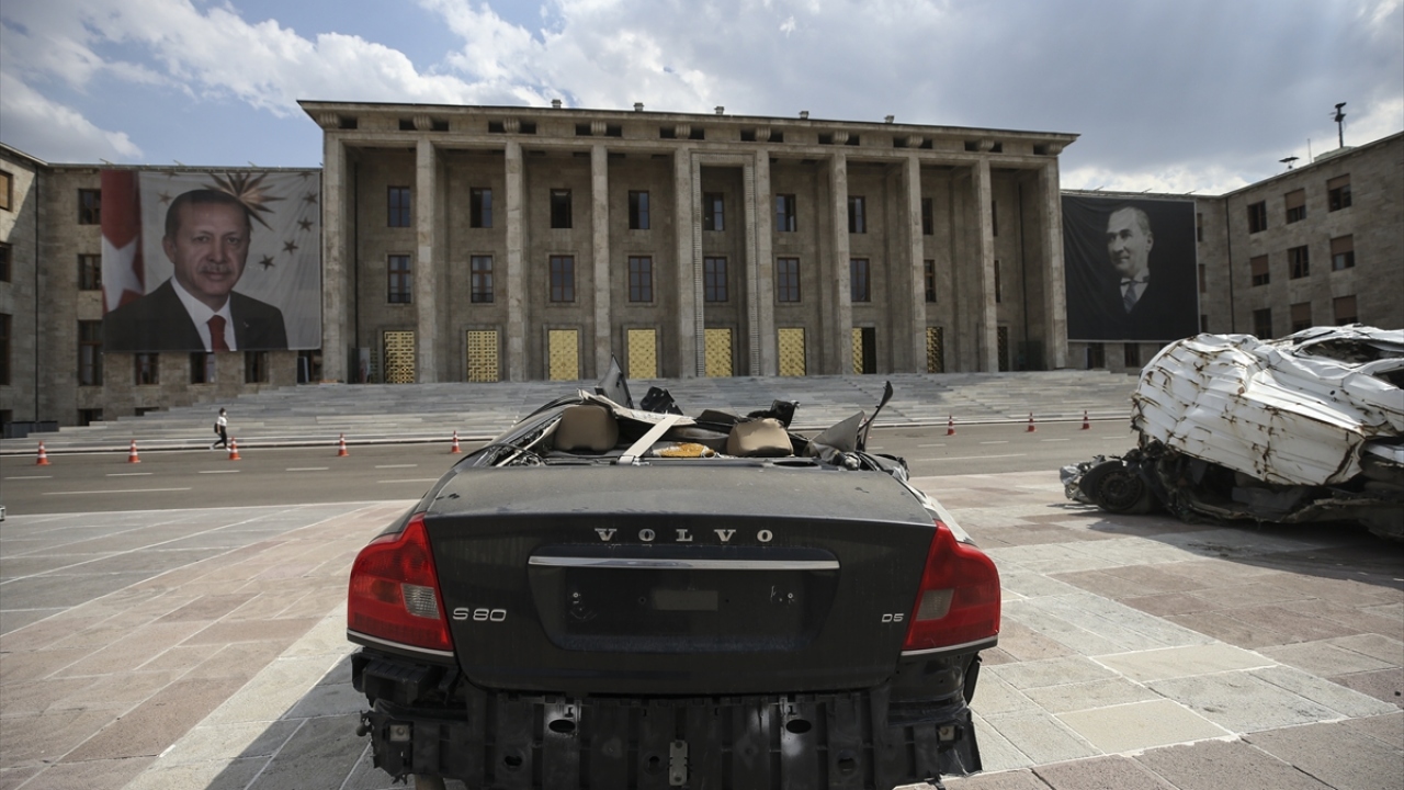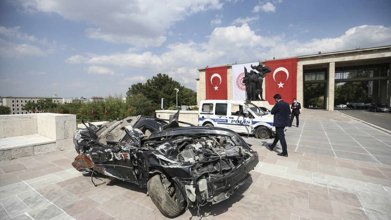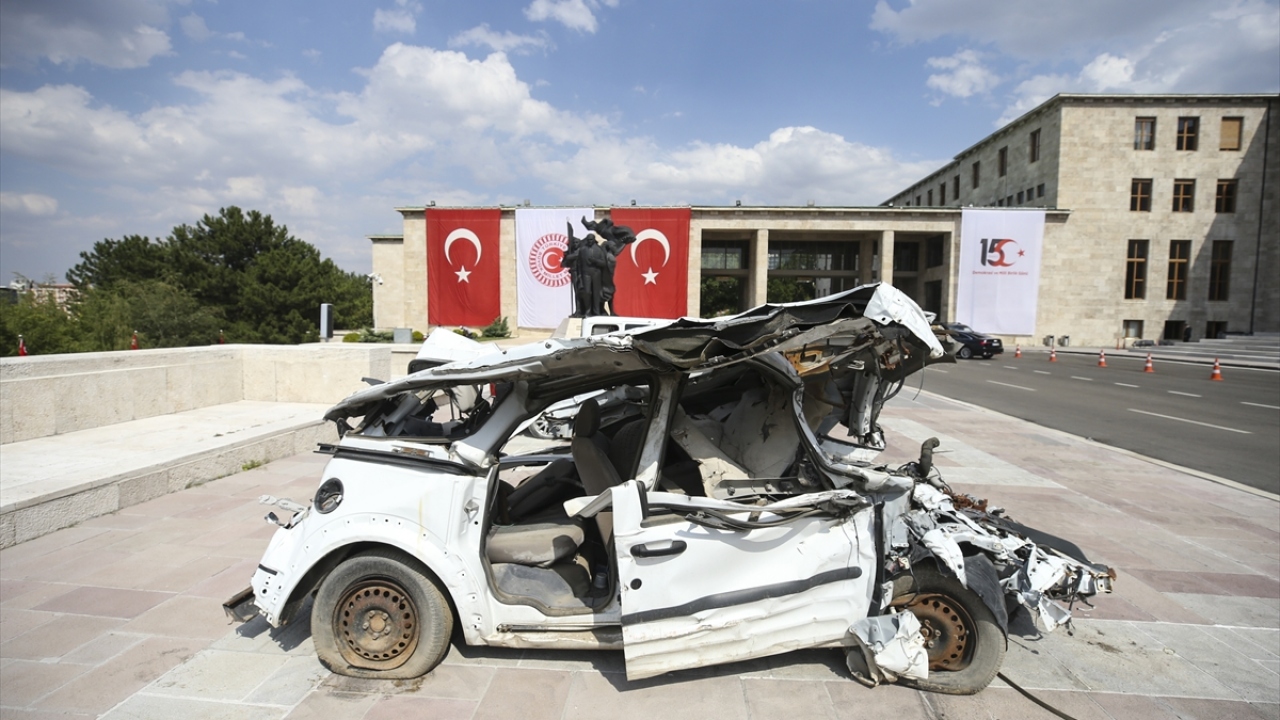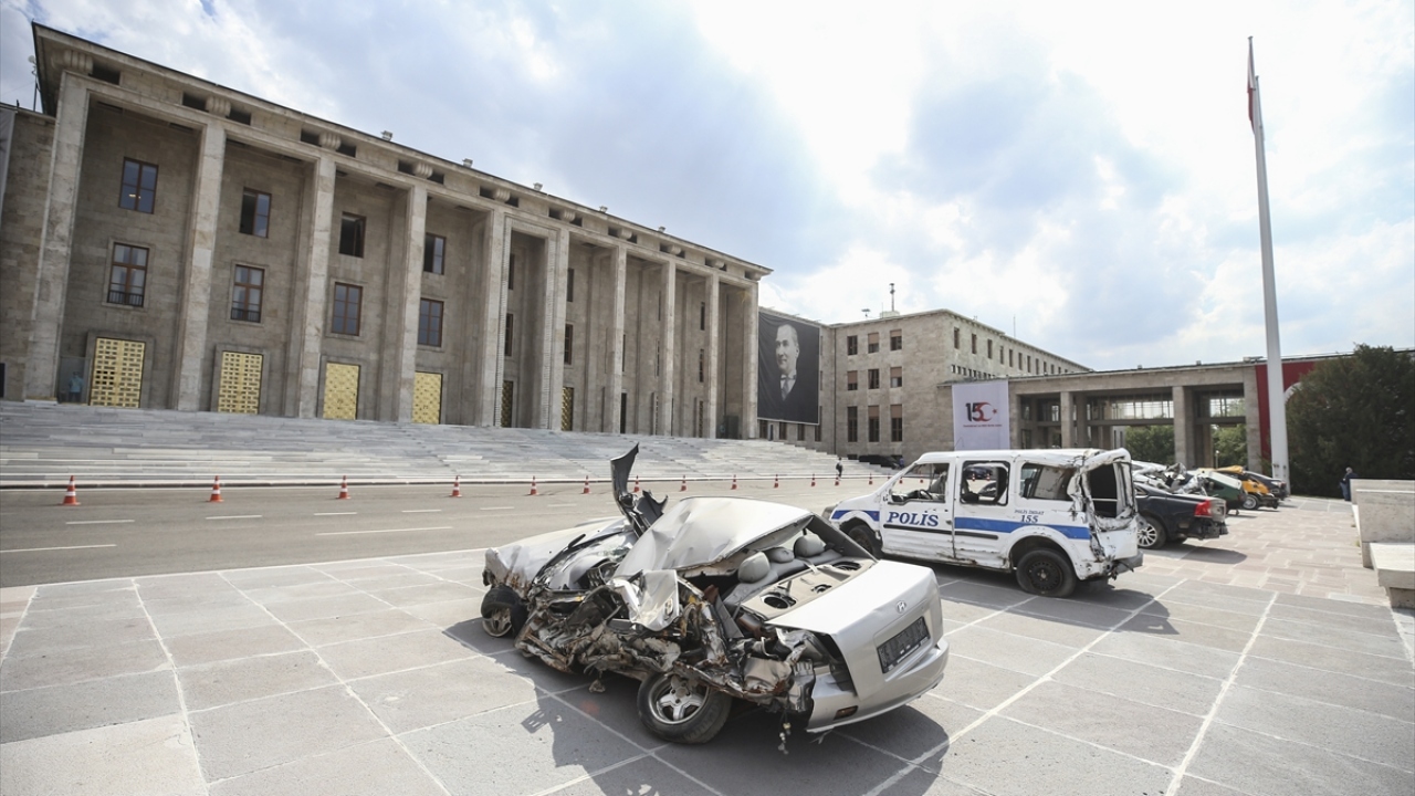Darbe girişiminde hasar gören araçlar, yarın düzenlenecek 15 Temmuz Demokrasi ve Milli Birlik Günü etkinlikleri kapsamında Meclis'e getirildi.