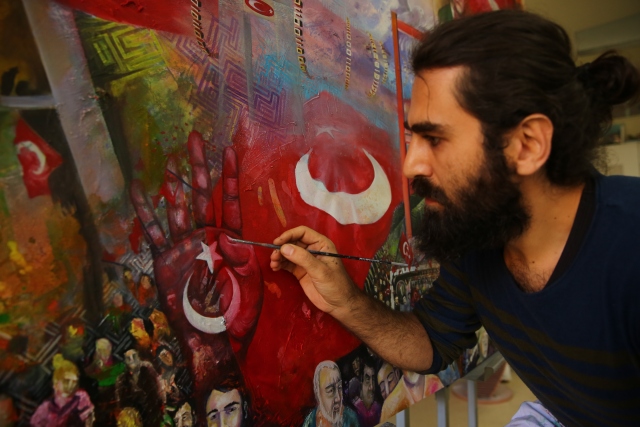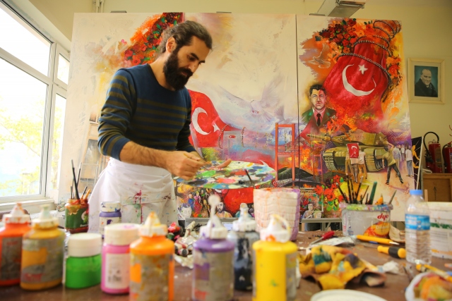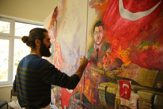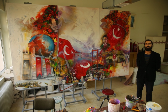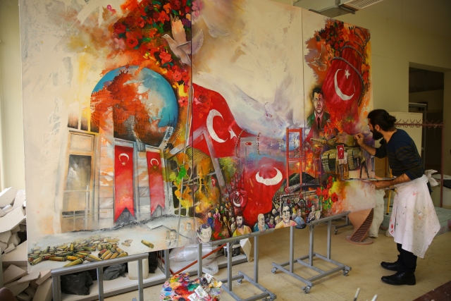 15 Temmuz'da yaşananları ve kahramanları dev tabloya yansıttı