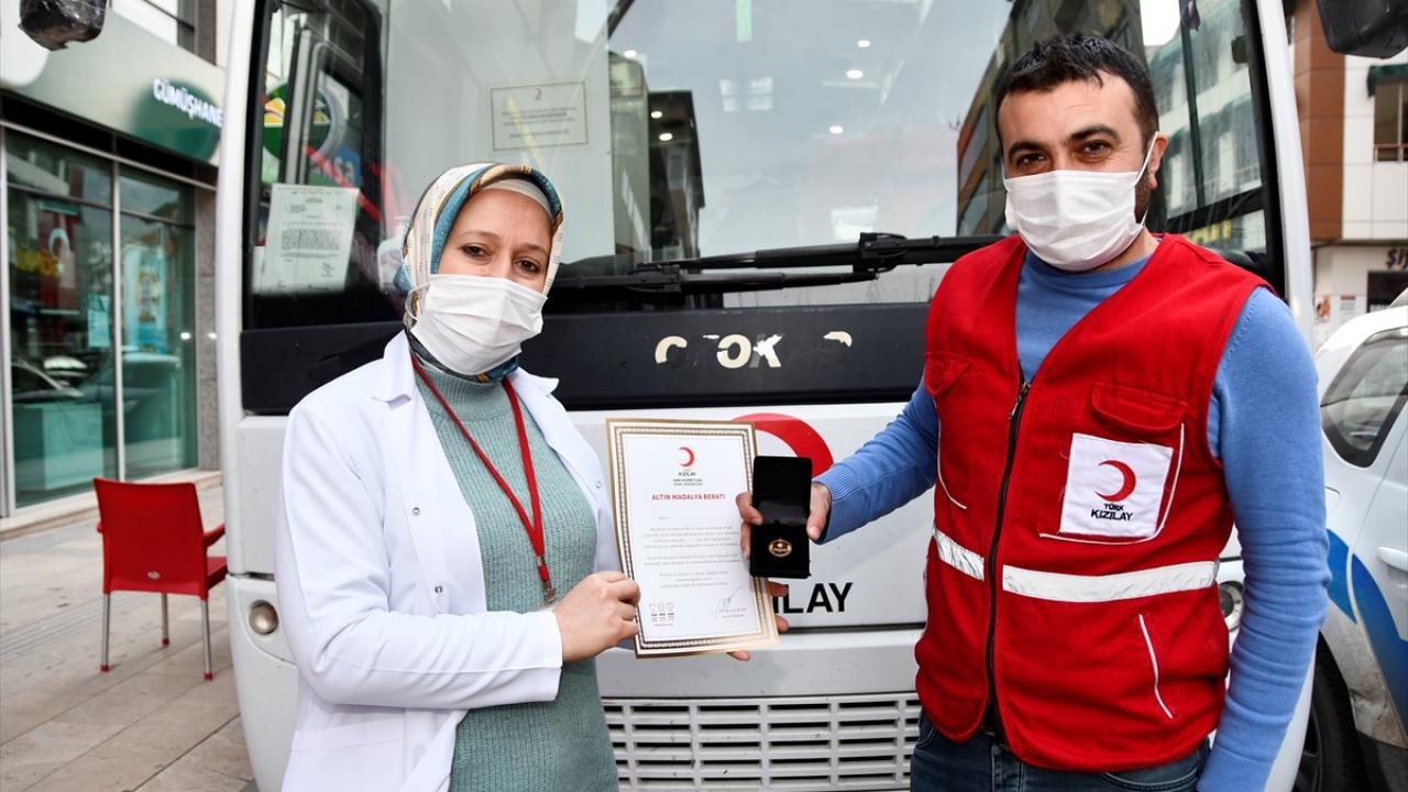 Çıtlak, 10 bağışta bulunan duyarlı bağışçıların bronz, 25 bağışta bulunanların gümüş, 35 bağışta bulunanların ise altın madalya ile ödüllendirildiğini kaydederek, Ezber`in çalışan olmasının yanında düzenli bir bağışçı olduğunu ve 41`inci bağışını yaptığını belirtti.