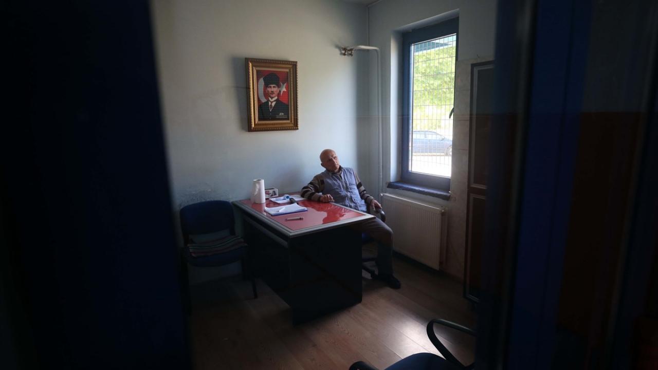Soyunma odasında kıyafetlerini değiştirdikten sonra işinin başına geçen Keçeci, mesai bitiminde evine yine koşarak ulaşıyor.