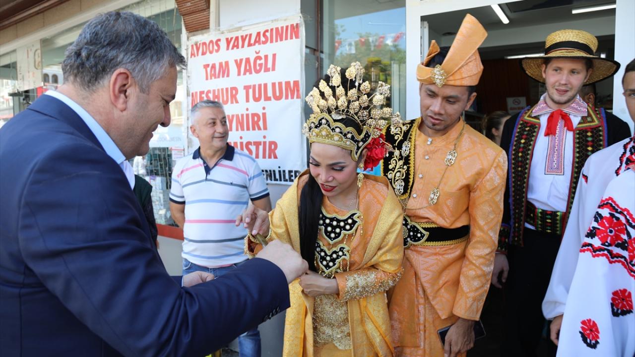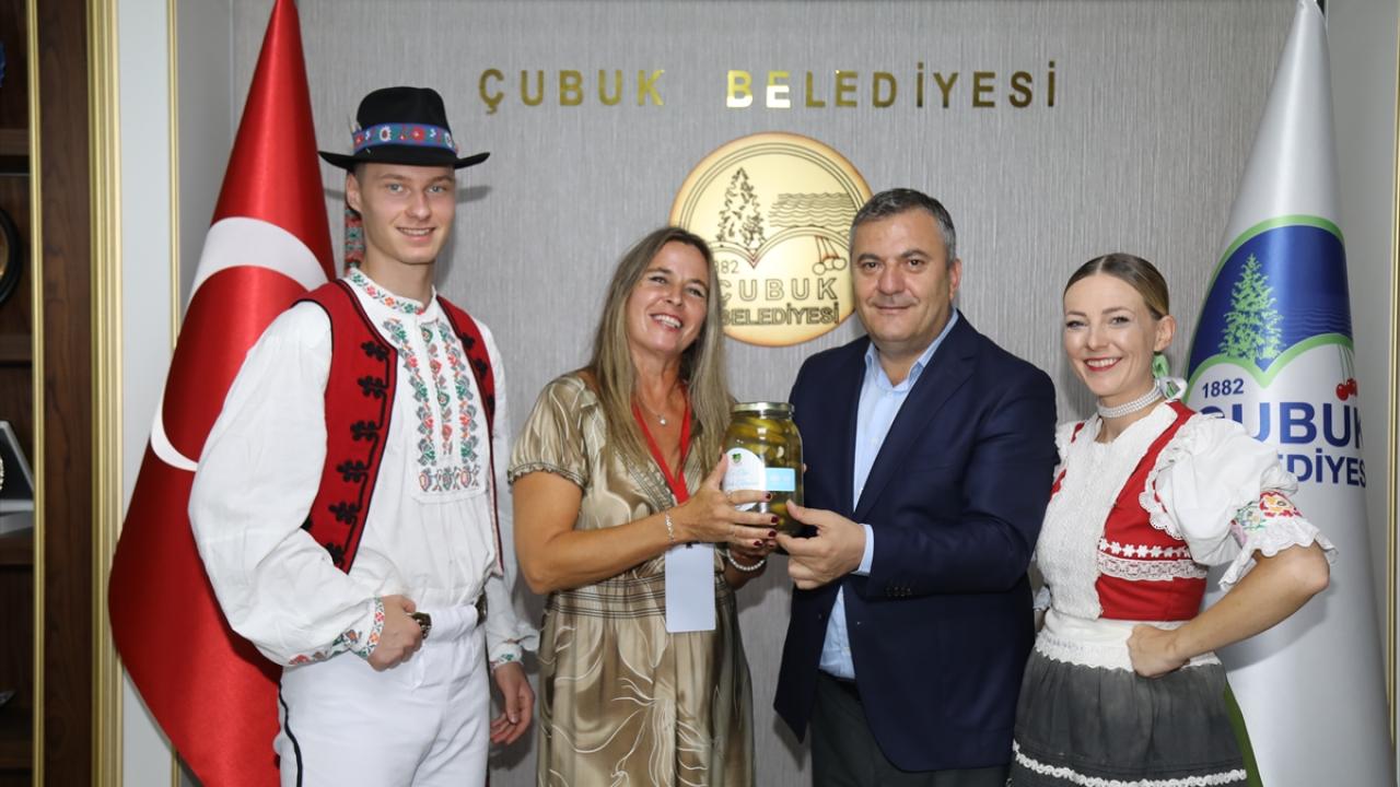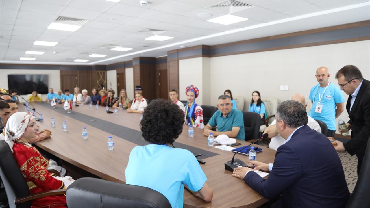 Festival kapsamında düzenlenen etkinlikler için yurt dışından gelen halk dansları ekipleri, Belediye Başkanı Baki Demirbaş’ı makamında ziyaret etti.