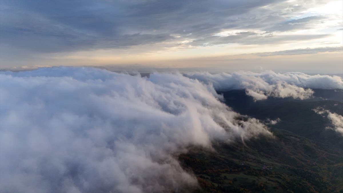Samsun'un Alaçam ilçesinde 1650 rakımlı Dürtmen Dağı'nda meydana gelen "sis denizi", dronla kaydedildi.