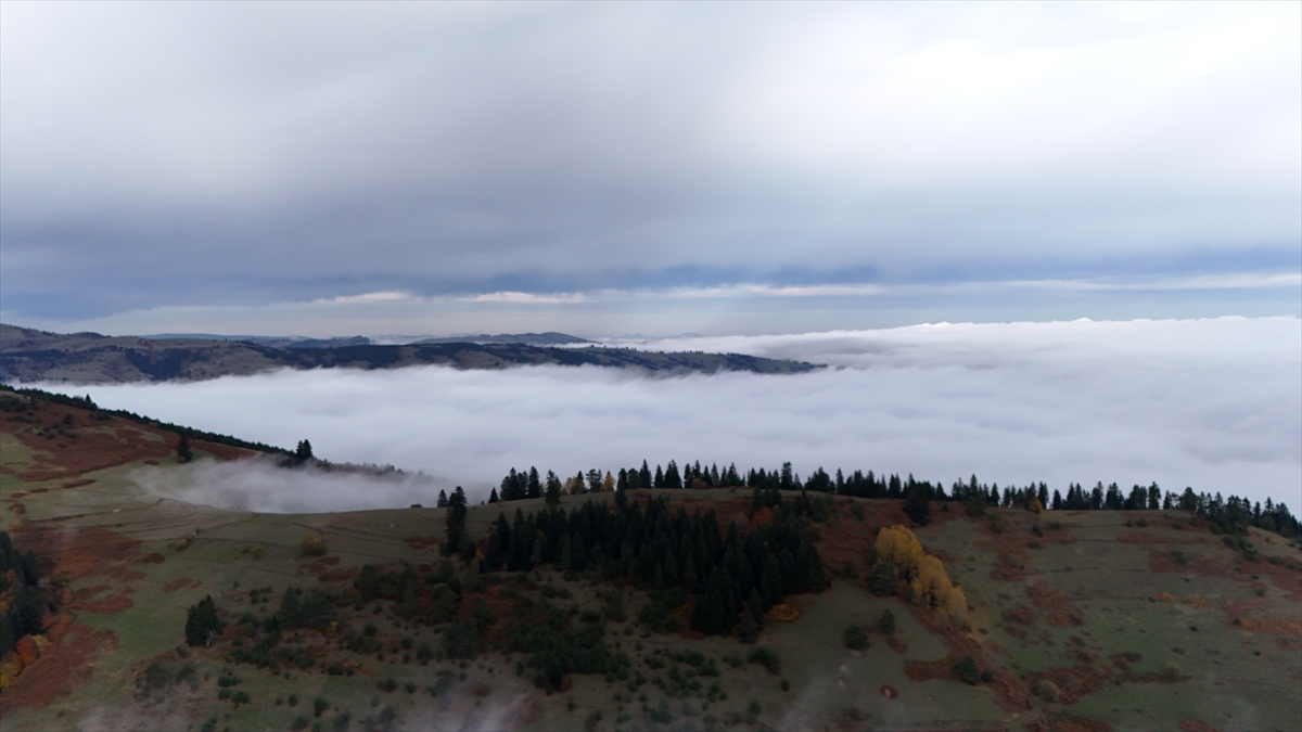 Dağda sabah oluşan yoğun sis, güzel görüntü oluşturdu. Sisin adeta denizi andıran yoğunluğu, dronla görüntülendi.