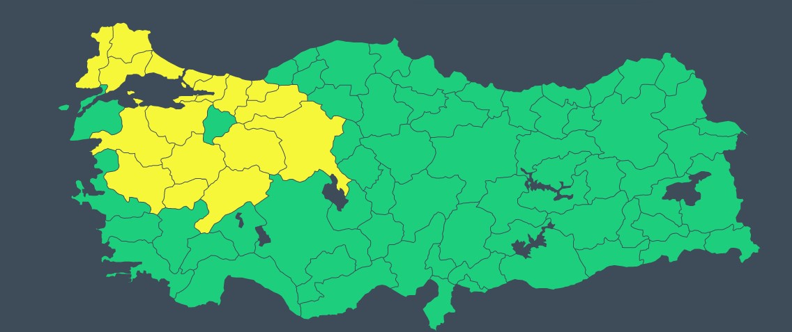 İç bölgelerde yüksek seyreden hava sıcaklığı, 4-5 derece azalarak mevsim normallerine inecek. Yağış batıdan tüm yurda yayılacak. Yarından itibaren yurt genelinde görülecek yağış, bazı yerlerde kuvvetli olacak. İşte Meteoroloji`nin `sarı` kodla uyardığı 17 il....