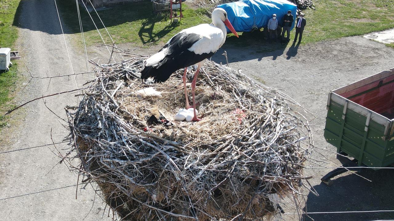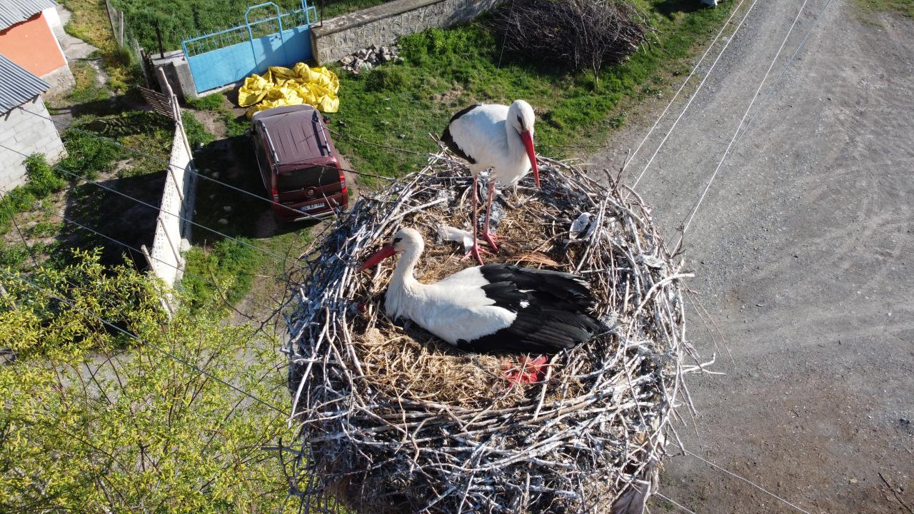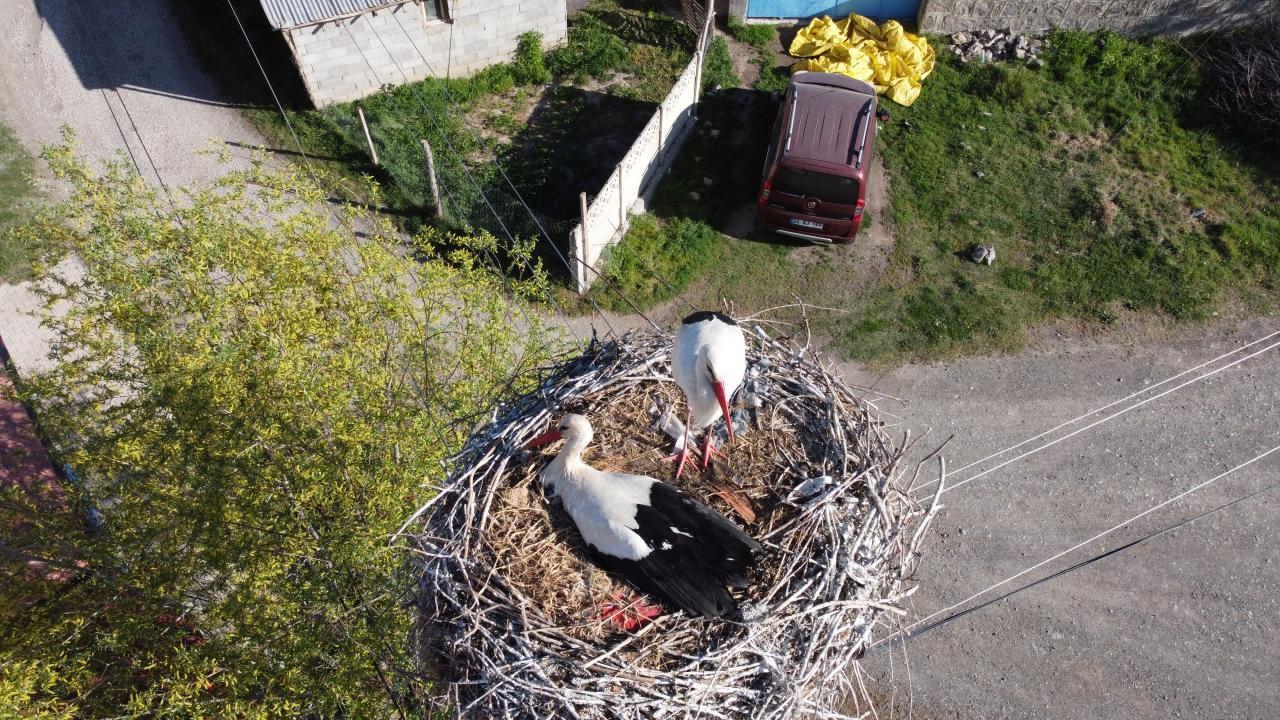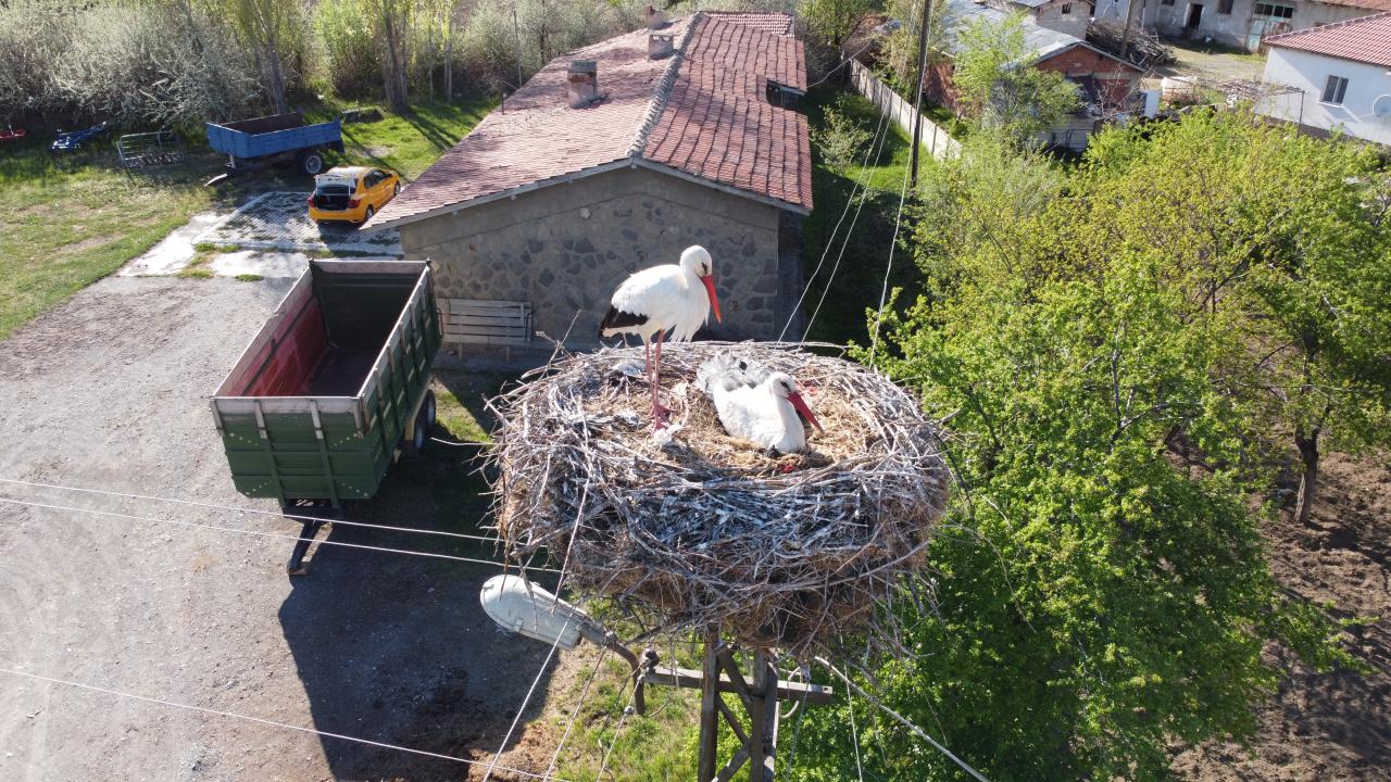 Erzincan'ın Mertekli köyünde aynı elektrik direğine 17 yıldır yuva yapıp burada kuluçkaya yatan leylekleri, köylüler özel misafir olarak görüyor.