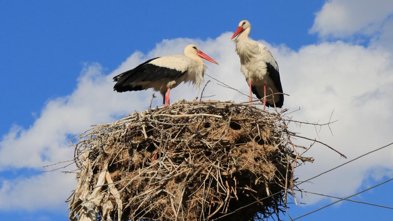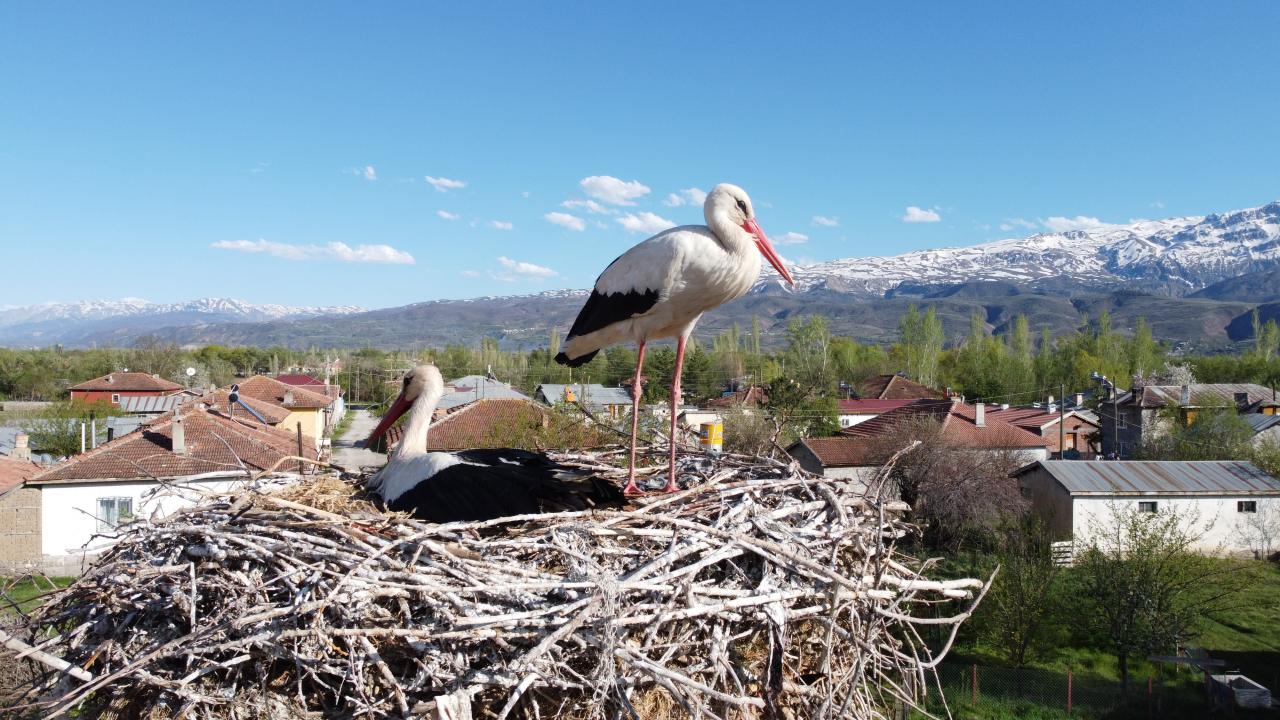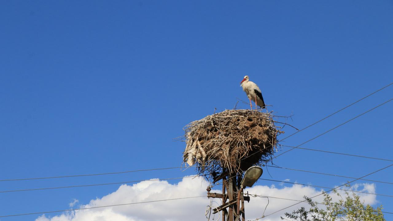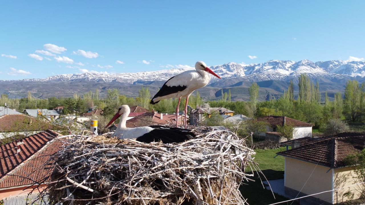 Erzincan'ın Mertekli köyünde aynı elektrik direğine 17 yıldır yuva yapıp burada kuluçkaya yatan leylekleri, köylüler özel misafir olarak görüyor.