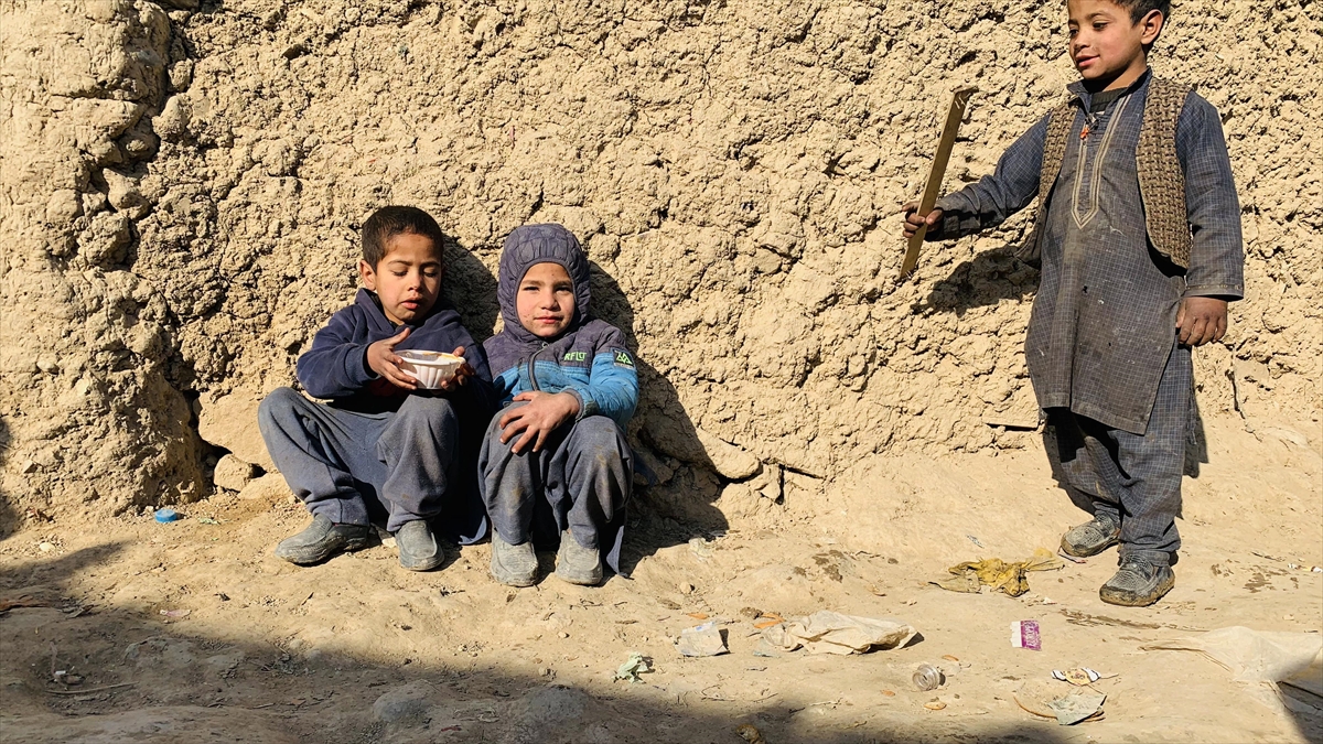 Afganistan`ın başkenti Kabil`deki geçici kamp alanında kalan ülke içinde yerinden edilmiş Afganlar, yaşamlarını zor şartlar altında sürdürmeye çalışıyor.