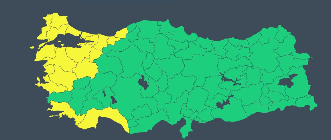 Meteoroloji, 18 il için 'sarı' kod uyarısında bulundu. Yetkililer de, ani sel, su baskını, yıldırım ve ulaşımda aksamalar gibi olumsuzluklara karşı dikkatli ve tedbirli olunması konusunda uyardı.