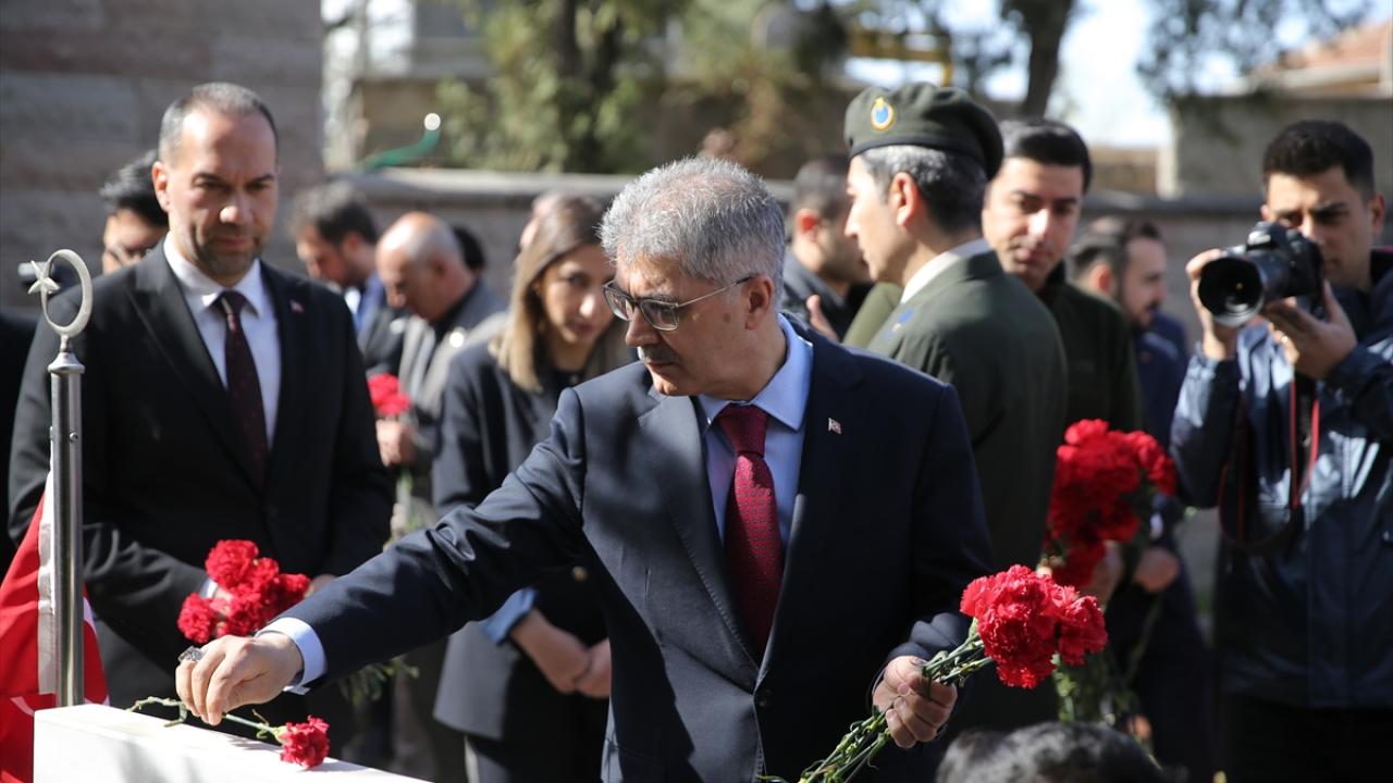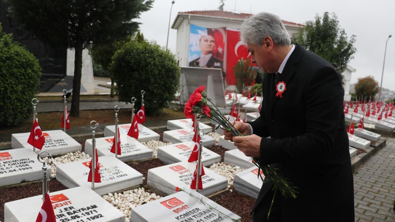 Sakarya Şehitliği`ndeki törende Vali Rahmi Doğan, şehit mezarlarına karanfil bıraktı.