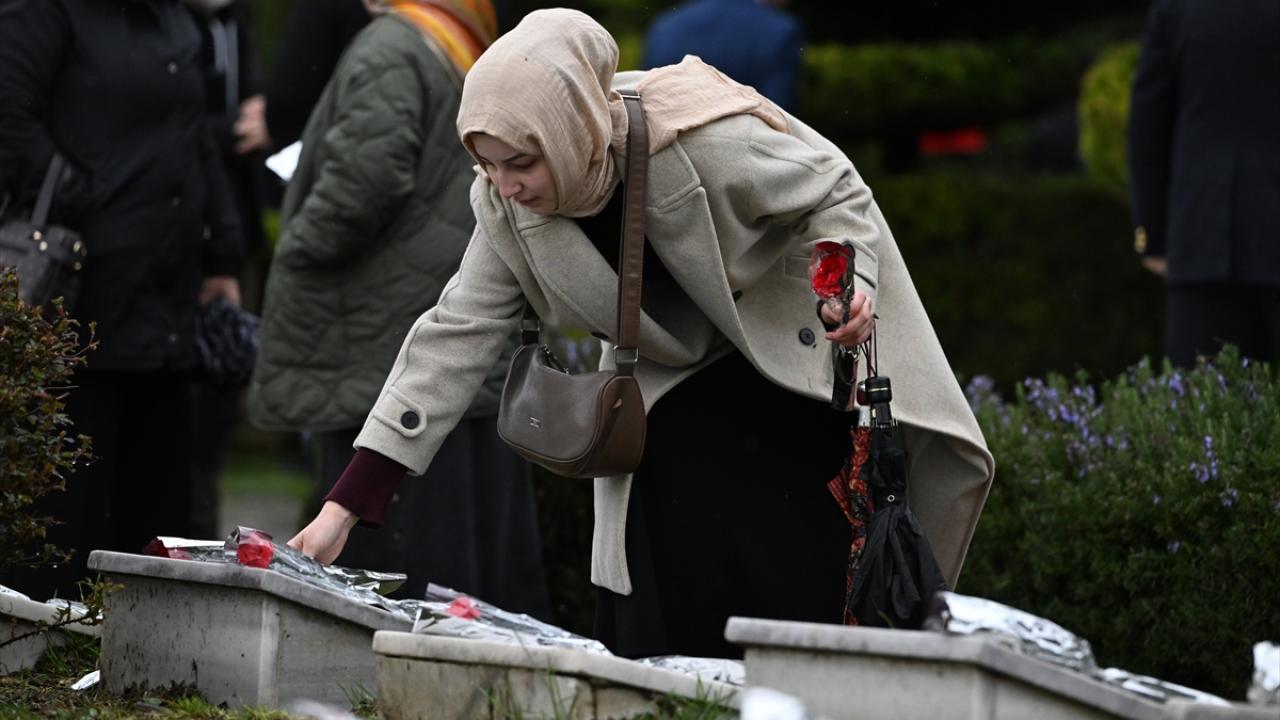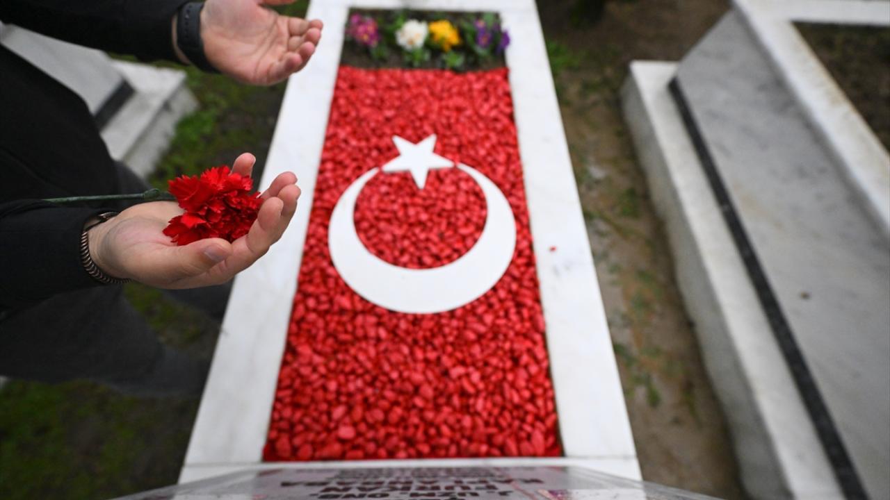 Saygı duruşunda bulunuldu, İstiklal Marşı okundu, katılımcılar şehit kabirlerine karanfil bırakarak dua etti.