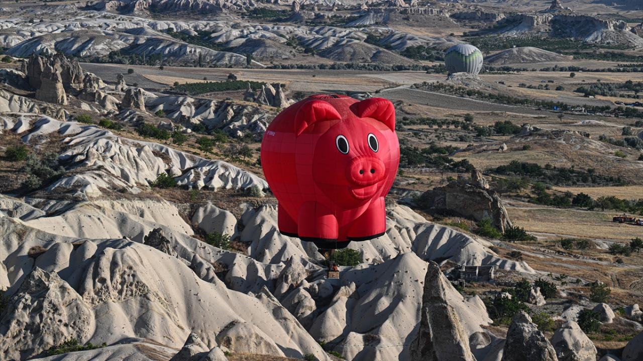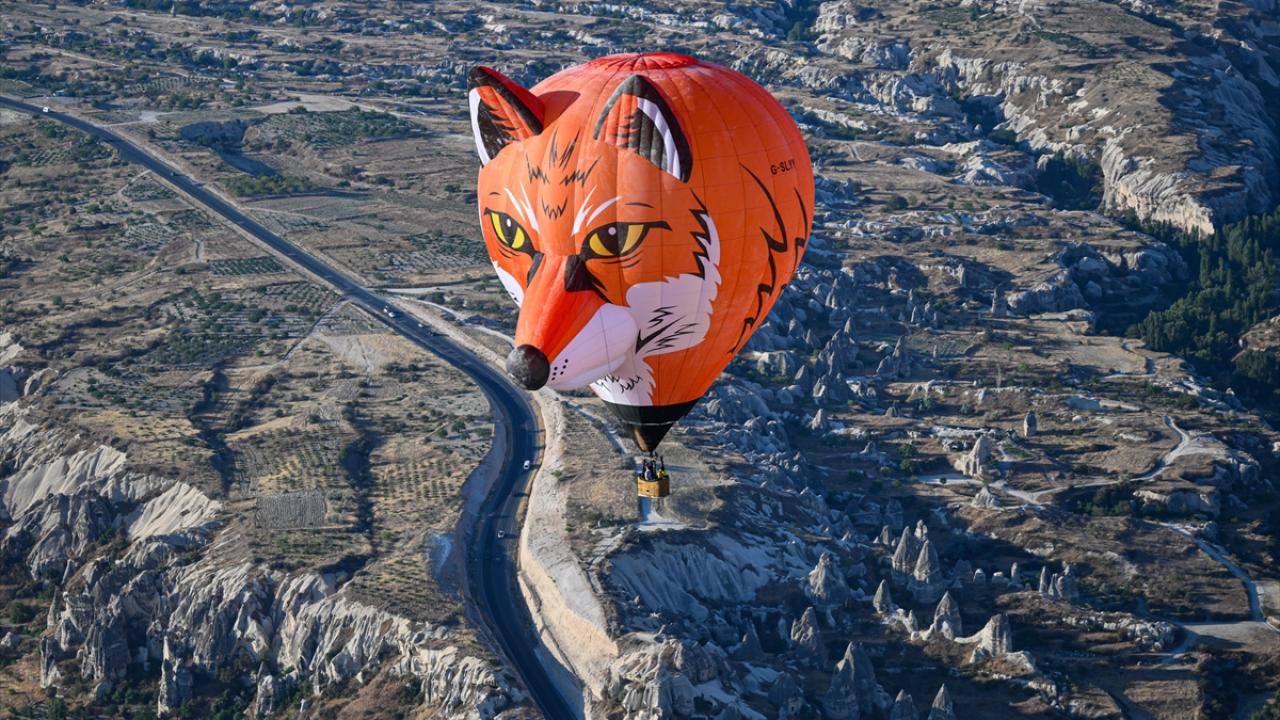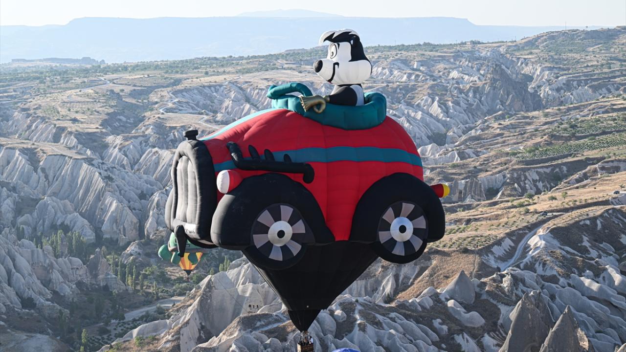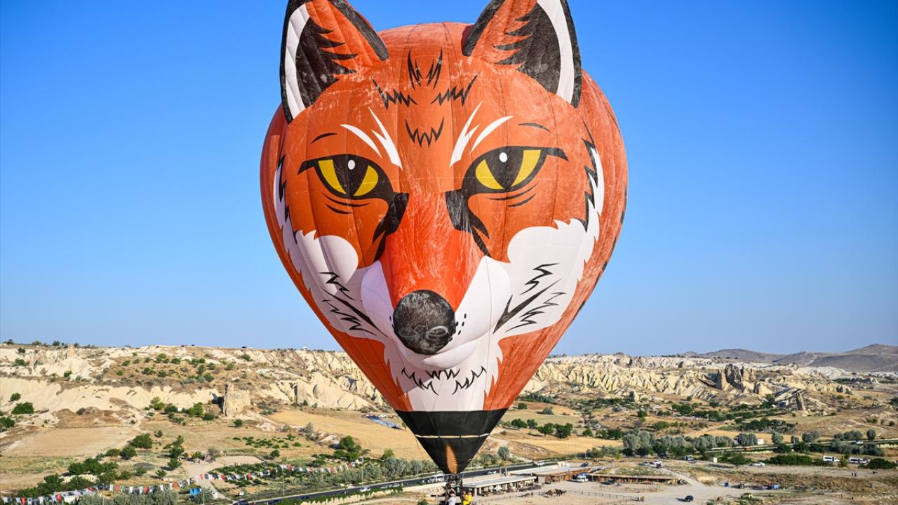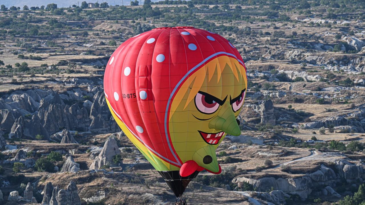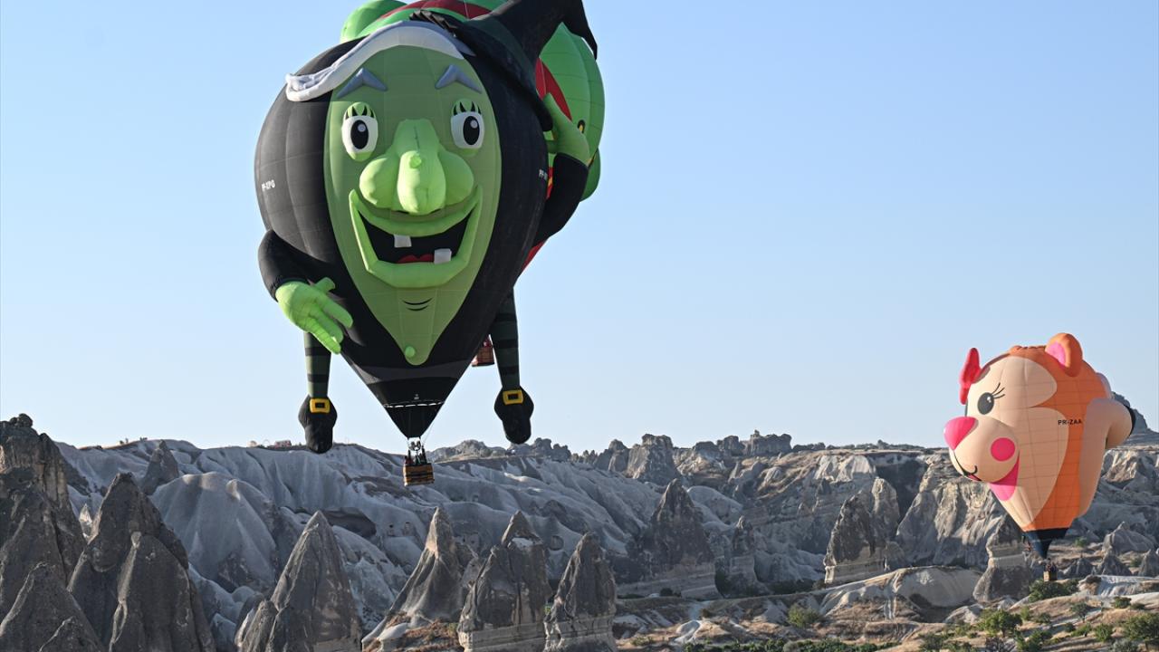 "Kurbağa", "fil", "kaplumbağa, "roket", "kalp", "kurt", yer değirmeni" gibi 60 figürlü balon Göreme beldesinden kalkış yaptıktan sonra vadiler üzerinde yaklaşık 45 dakika boyunca uçtu.