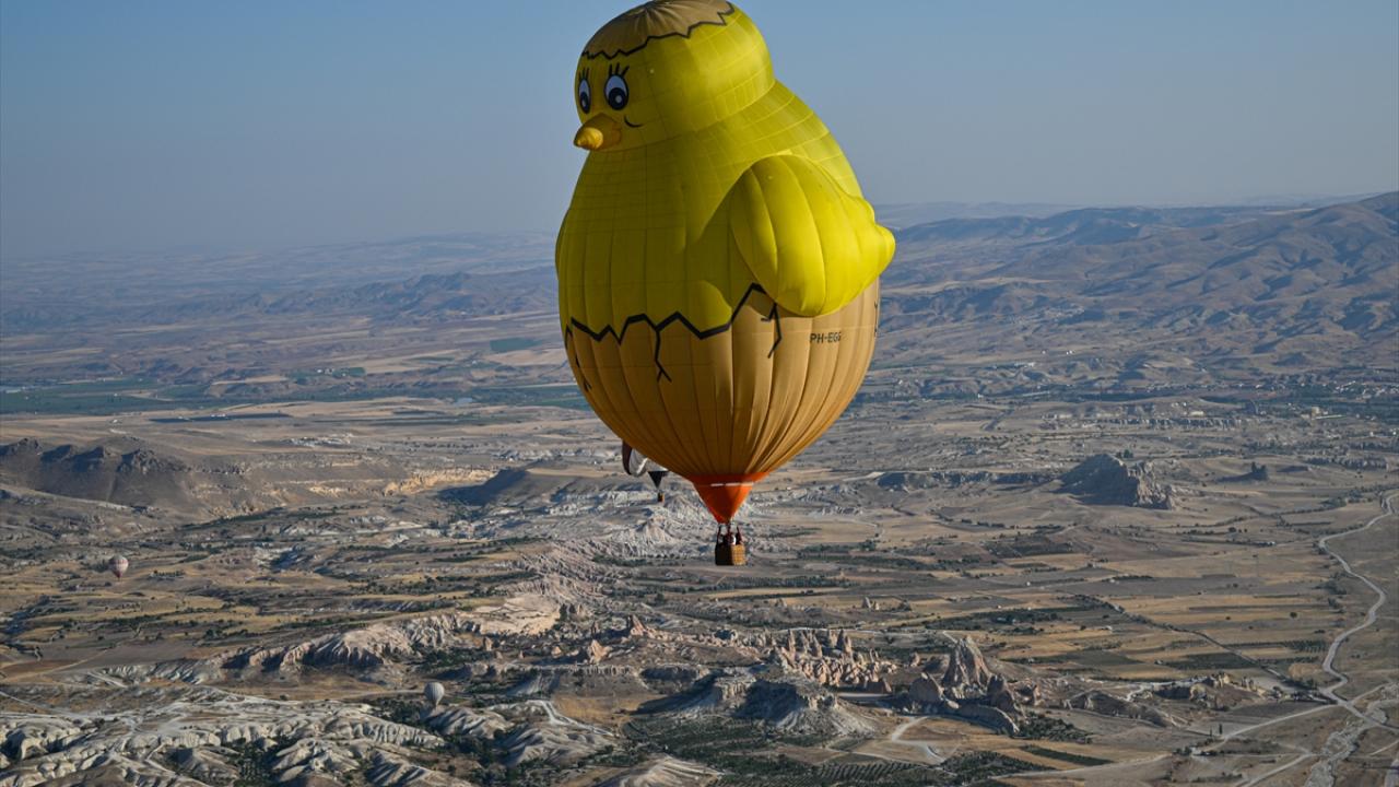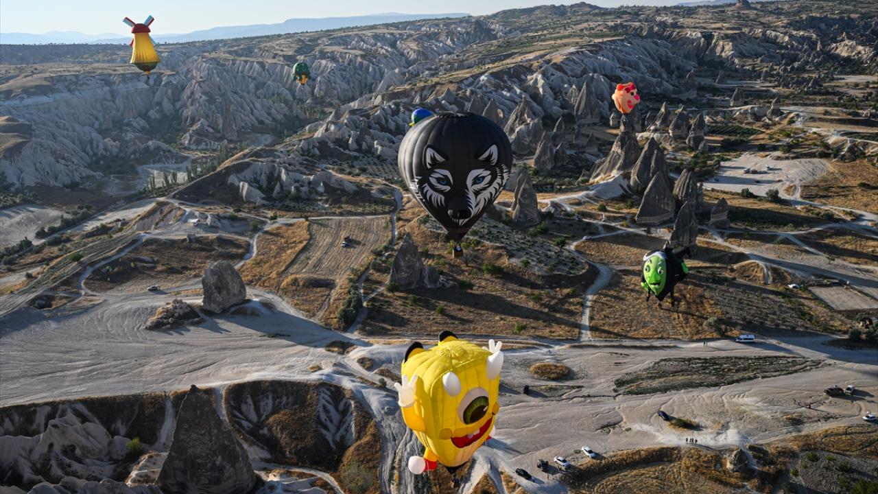 Kentte bu yıl ikincisi gerçekleştirilen festival çerçevesinde, dünyada sıcak hava balon turlarının en yoğun şekilde yapıldığı bölgede birbirinden ilginç figürlü balonlar peribacalarının üzerinde süzüldü.