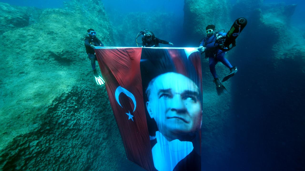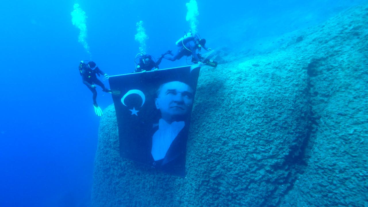Dalışseverler, dalış sırasında Atatürk posteri ve Türk bayrağı açarak 19 Mayıs Atatürk`ü Anma, Gençlik ve Spor Bayramı`nı kutladı.