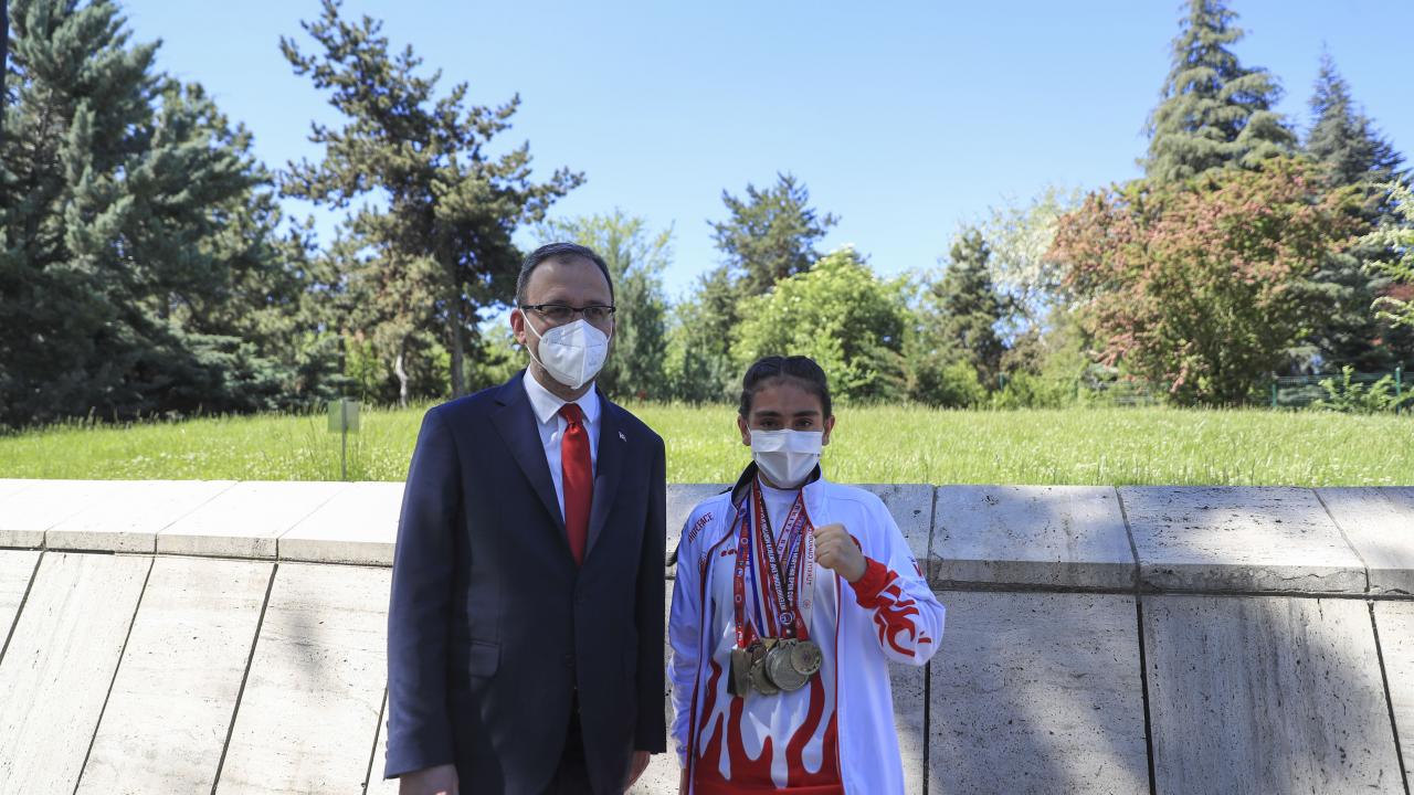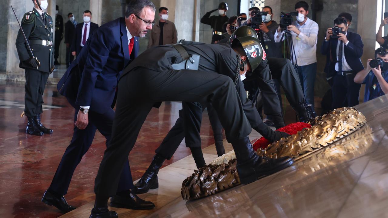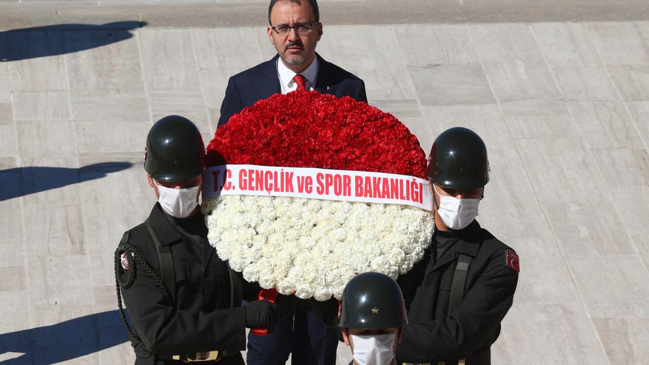 Bakan Kasapoğlu, Atatürk`ün mozolesine kırmızı ve beyaz karanfillerden oluşan çelengi bıraktı. Ardından saygı duruşunda bulunuldu, İstiklal Marşı okundu.
