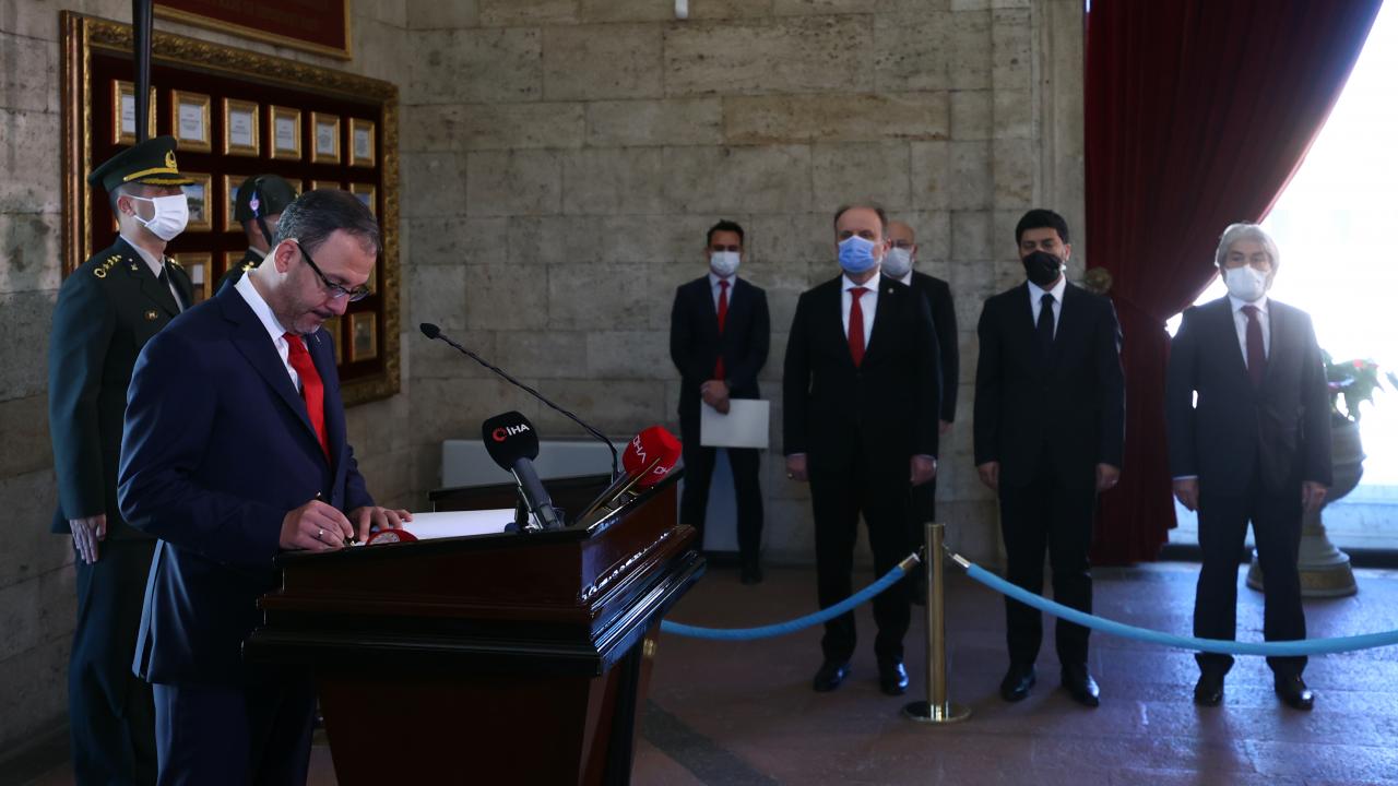 Gençlik ve Spor Bakanı, "Sevinç ile ifade etmek isterim ki genç sporcularımız her gün artan başarı ve rekorlarla al bayrağımızı dünyanın dört bir yanında gururla dalgalandırmaktadırlar. Milli ve manevi değerlerine sımsıkı sarılmış gençlerimiz ile vatanımızın ve aziz milletimizin hukukuna son nefesimize kadar sahip çıkacağız. Gençlerimiz armağanınız olan bu özel gün için size minnettarız" ifadeleriyle Anıtkabir Özel Defteri`ni imzaladı.