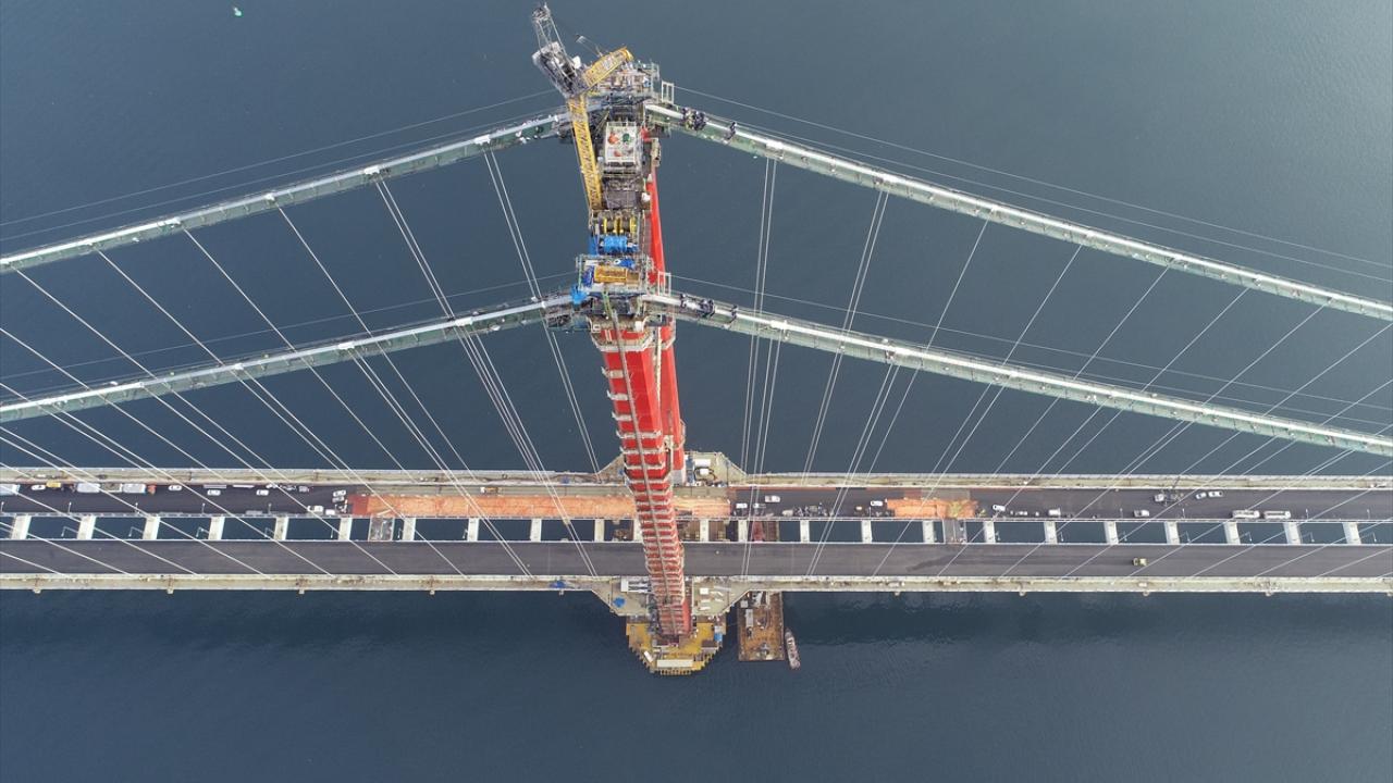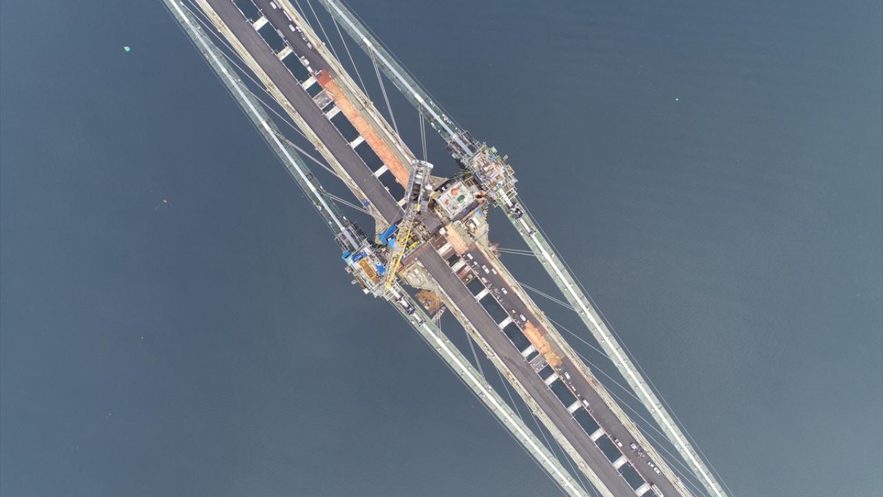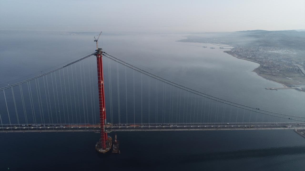 Ana kablo imalatları kapsamında orta açıklıklarda 288, yan açıklıklarda ilave 16 kablo demeti ile toplam 304 kablo demetinden oluşan ana kablo montajı ile tabliyeleri ana kabloya bağlayan kelepçe ve askı halatı montaj çalışmaları da sonlandı. Ana kabloyu dış etkilerden de koruyacak tel sargı çalışmaları sürüyor.