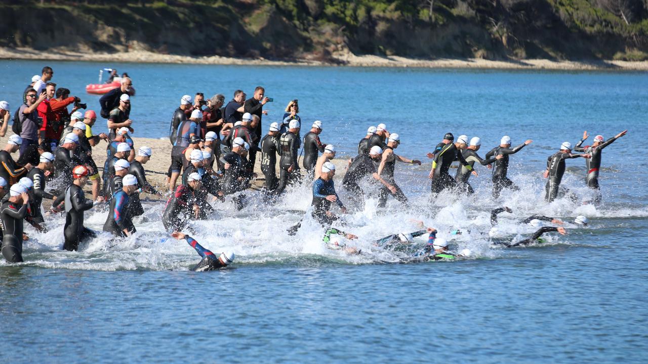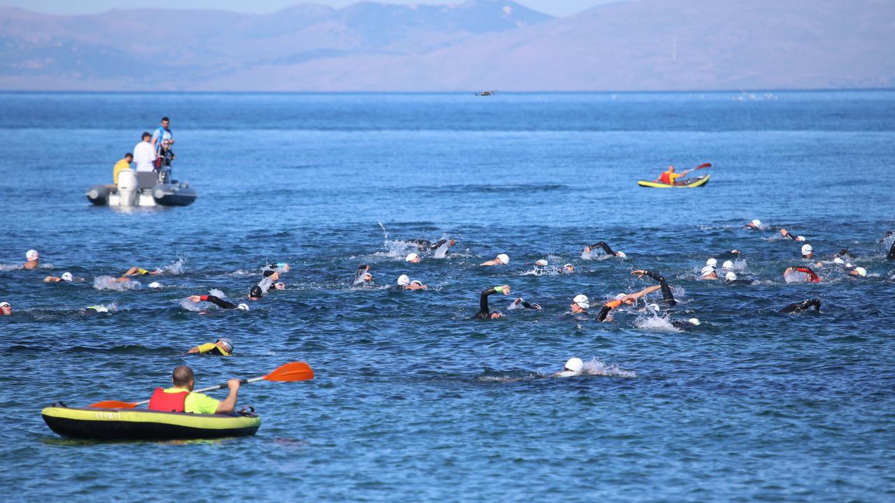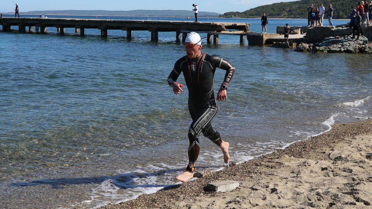 Sabah 07.00`de, Kabatepe açıklarında bekleyen P-1205 borda numaralı "TCG Karabiga" gemisinden Çanakkale Boğaz ve Garnizon Komutanı Tuğamiral Mustafa Turhan Ecevit`in verdiği start ile uzun mesafe triatlon yarışına başlayan sporcular sırasıyla 2 bin 100 metre yüzüp, bisikletle 112 kilometre katedecek.