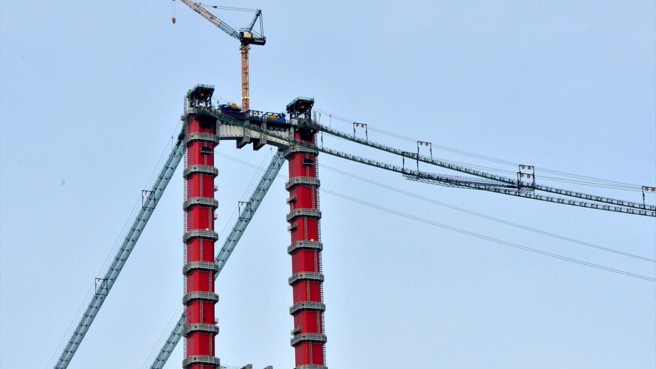 Çanakkale Boğazı'nın Avrupa ve Asya yakalarını birleştirecek 1915 Çanakkale Köprüsü'nün yapımı, "kedi yolunun" tamamlanmasının ardından deniz üstü çalışmalarla devam ediyor.