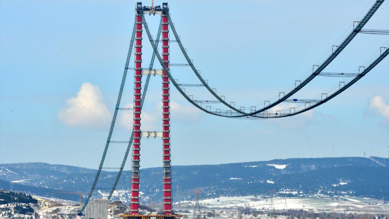 Orta açıklığı 2023 metre, 770`er metre yan açıklıklar, 365 ve 680 metrelik yaklaşım viyadükleriyle Çanakkale Boğazı`nın ilk asma köprüsünün toplam uzunluğu 4 bin 608 metreyi bulacak.