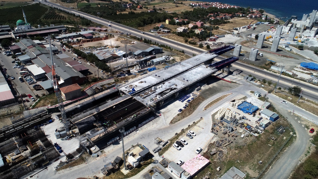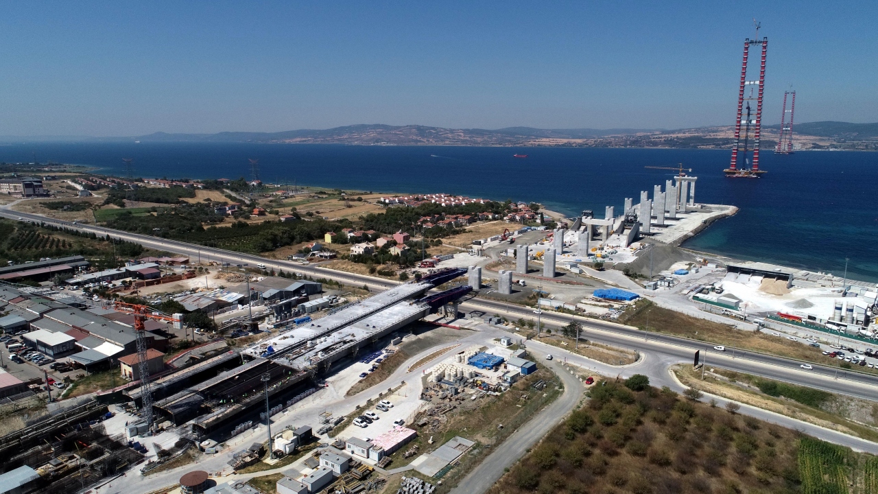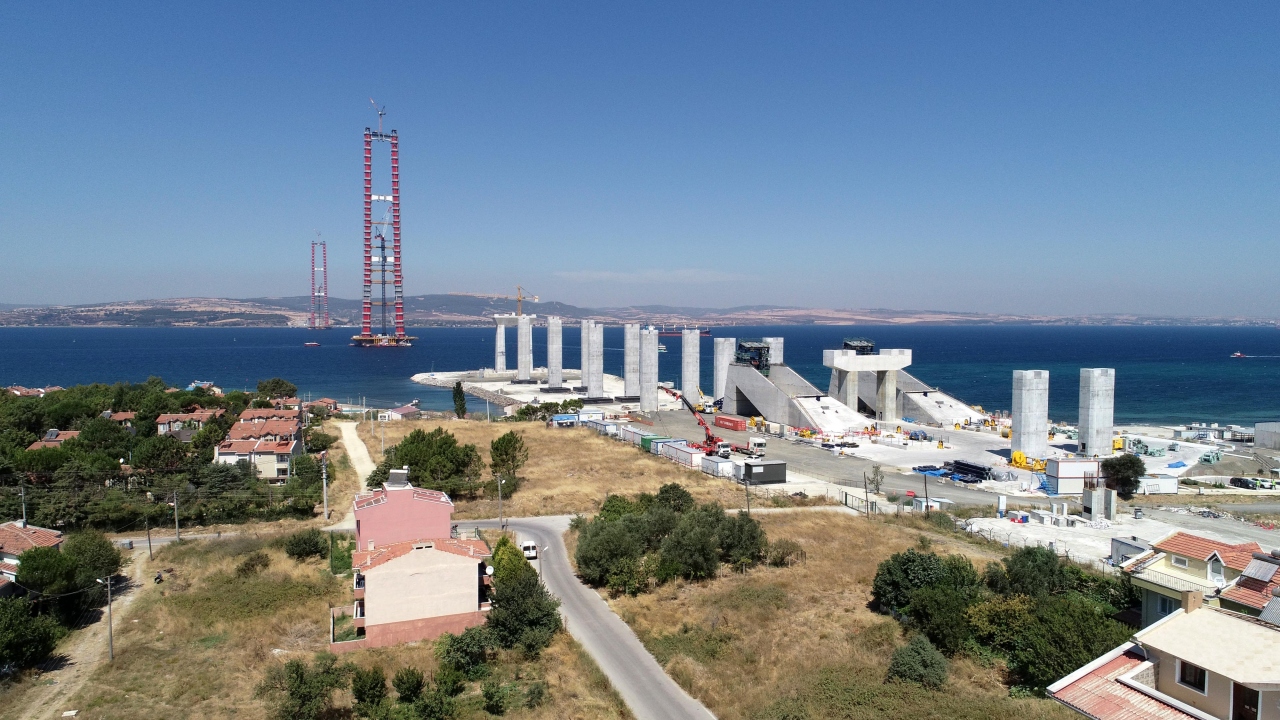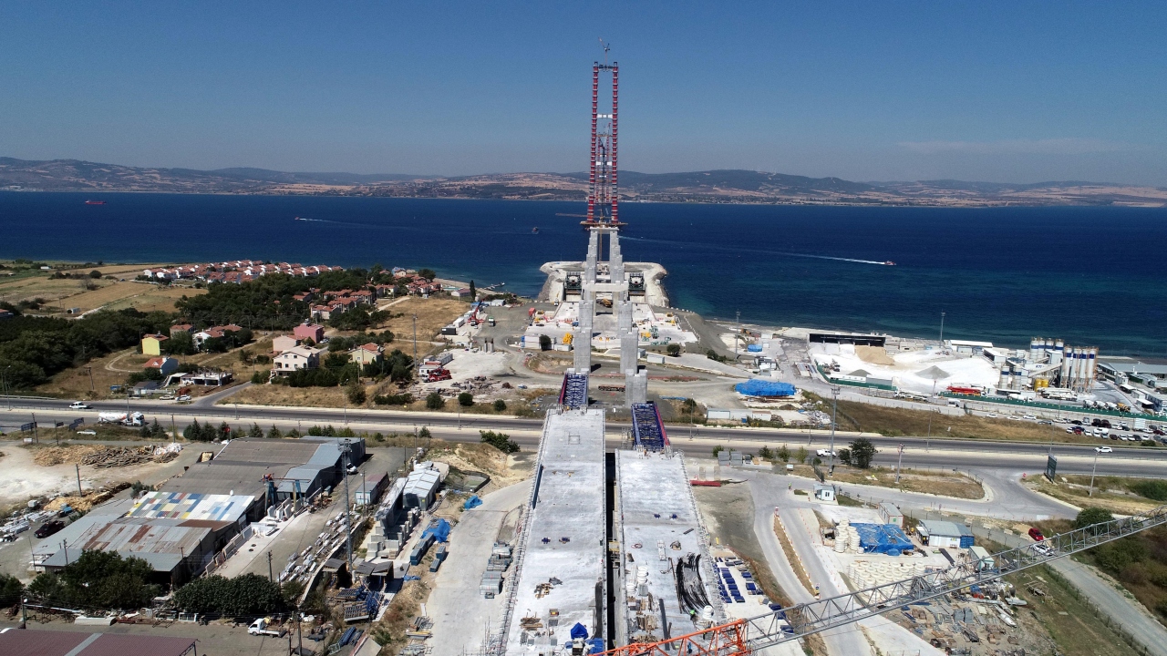 Lapseki yakasında köprü ayağına son blokun montajı da Cumhurbaşkanı Erdoğan`ın telekonferans ile katıldığı törenle gerçekleştirildi.