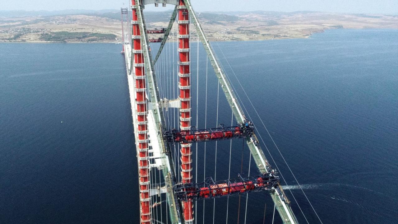 5 binden fazla kişinin görev aldığı 1915 Çanakkale Köprüsü çalışmalarında 87 tabliyeden 67'sinin monte edilmesiyle köprünün geçiş yolunun büyük bölümü tamamlandı.