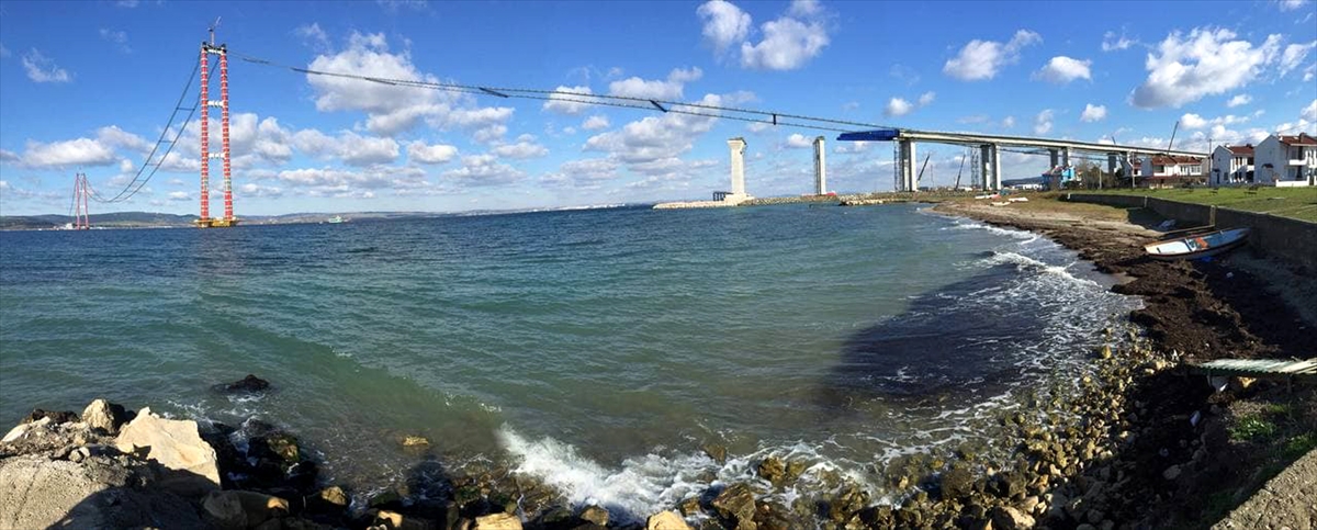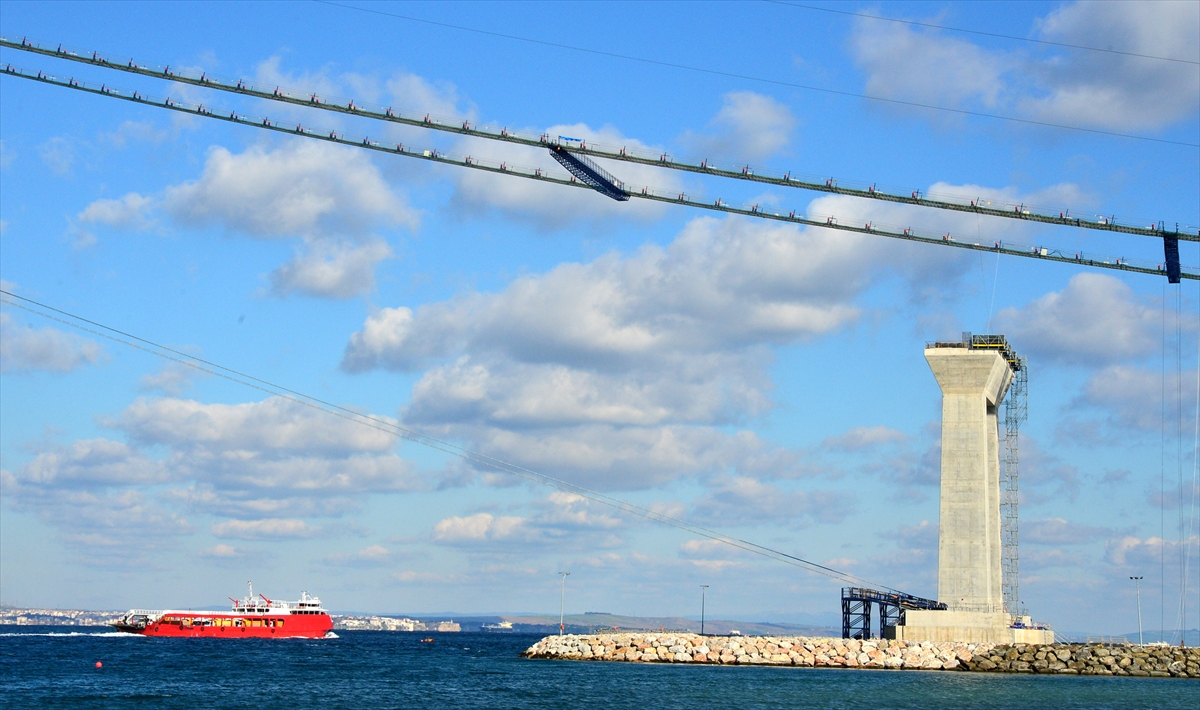 Hizmete açıldığında "dünyanın en büyük orta açıklıklı asma köprüsü" unvanını alacak 1915 Çanakkale Köprüsü'nün inşası hızla ilerliyor. İşçilerin deniz üzerinde daha rahat çalışmasını sağlayacak kedi yolunun kurulumu tamamlandı.