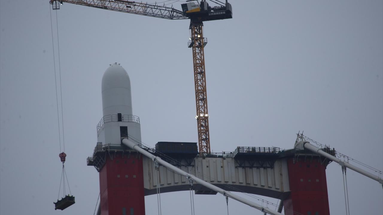 Çanakkale Boğazı'nda, Lapseki ve Gelibolu ilçeleri arasında inşa edilen 1915 Çanakkale Köprüsü'nün kulelerine top mermisi figürlerinin yerleştirilmesine başlandı.